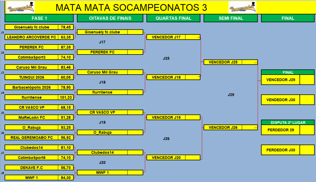 MATA MATA SOCAMPEONATOS 3 – FASE 1 Publicado em 20/04/2026 por socampeonatos Compartilhe isso: Compartilhar no X(abre em nova janela) 18+ Compartilhar no Facebook(abre em nova janela) Facebook Compartilhar no WhatsApp(abre em nova janela) WhatsApp Curtir Carregando... Relacionado