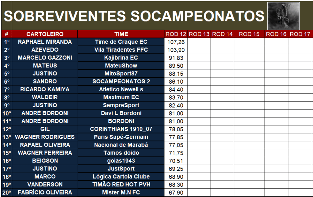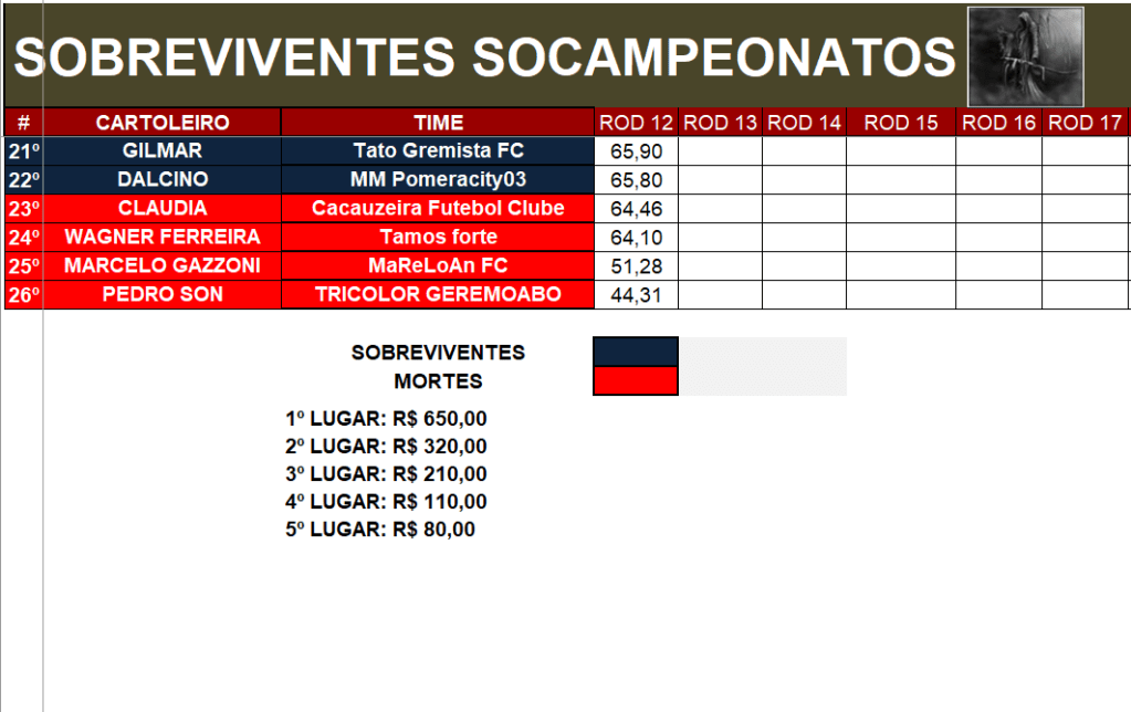 SOBREVIVENTES SOCAMPEONATOS – RODADA 12 Publicado em 20/04/2026 por socampeonatos Compartilhe isso: Compartilhar no X(abre em nova janela) 18+ Compartilhar no Facebook(abre em nova janela) Facebook Compartilhar no WhatsApp(abre em nova janela) WhatsApp Curtir Carregando... Relacionado