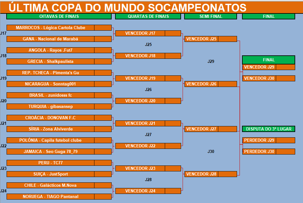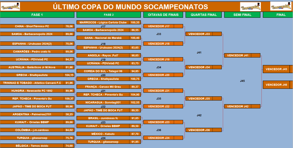 ÚLTIMA COPA DO MUNDO SOCAMPEONATOS – FASE MATA MATA – FINAL, DISPUTA DO 3º,5º,7º LUGARES