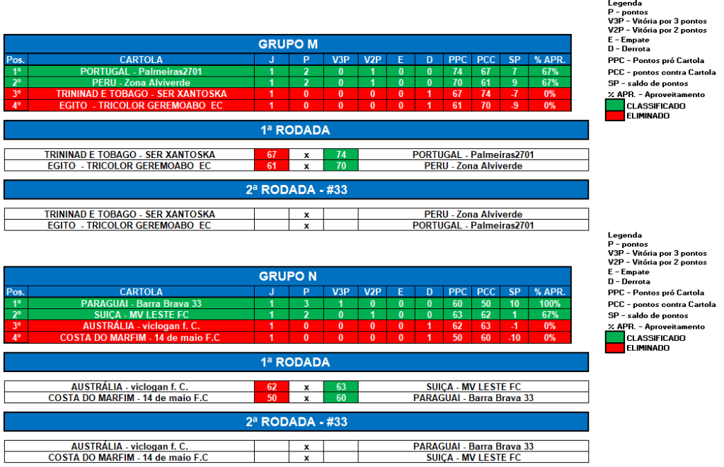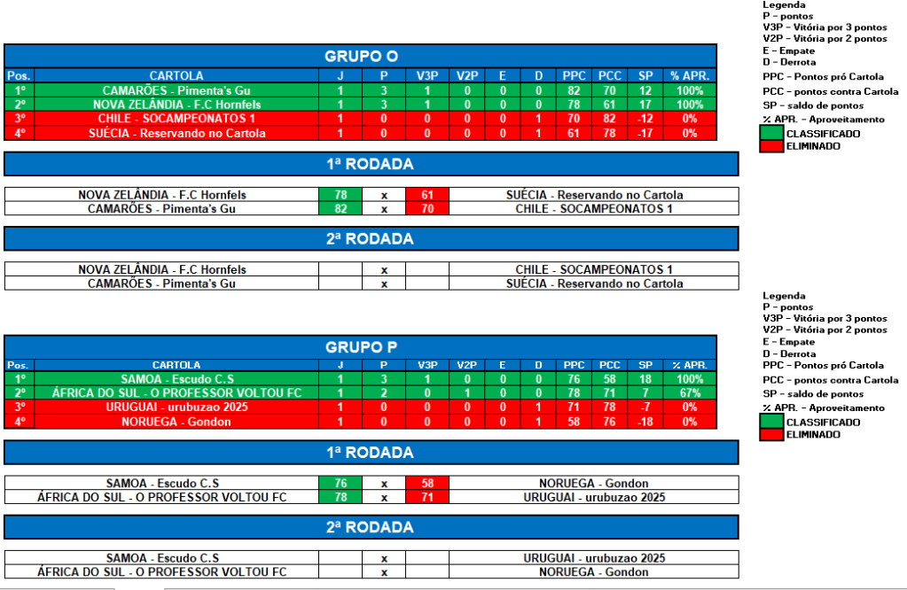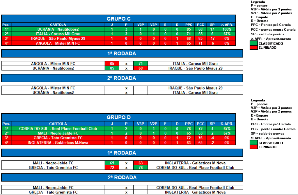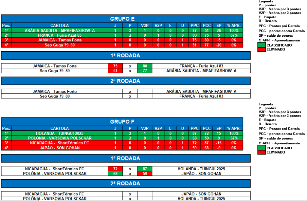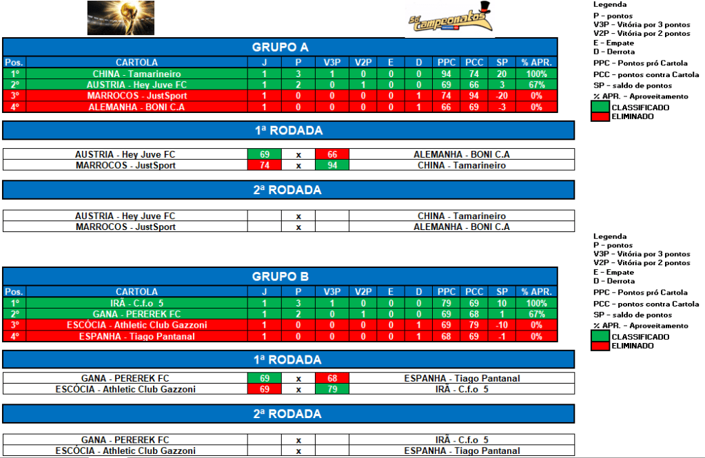 COPA DO MUNDO SOCAMPEONATOS 2 – RODADA 1