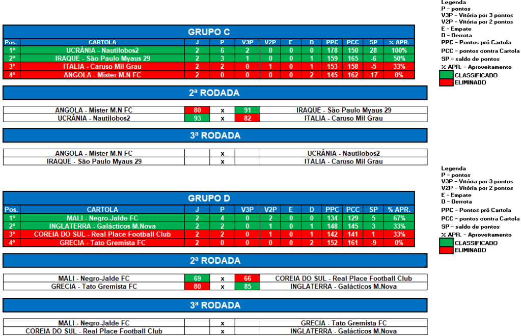 COPA DO MUNDO SOCAMPEONATOS – FASE DE GRUPOS – RODADA 2
