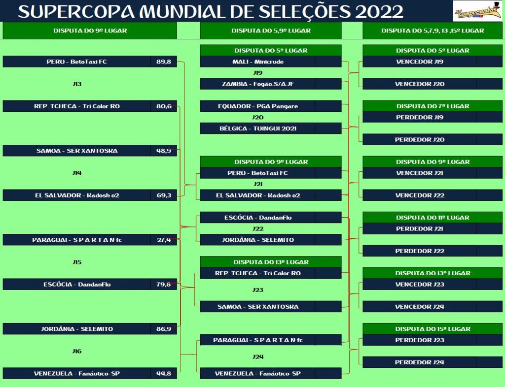 SUPERCOPA MUNDIAL DE SELEÇÕES – SEMI FINAL, DISPUTA DO 5º,9º,13º LUGAR Publicado em 11/11/2022 por socampeonatos