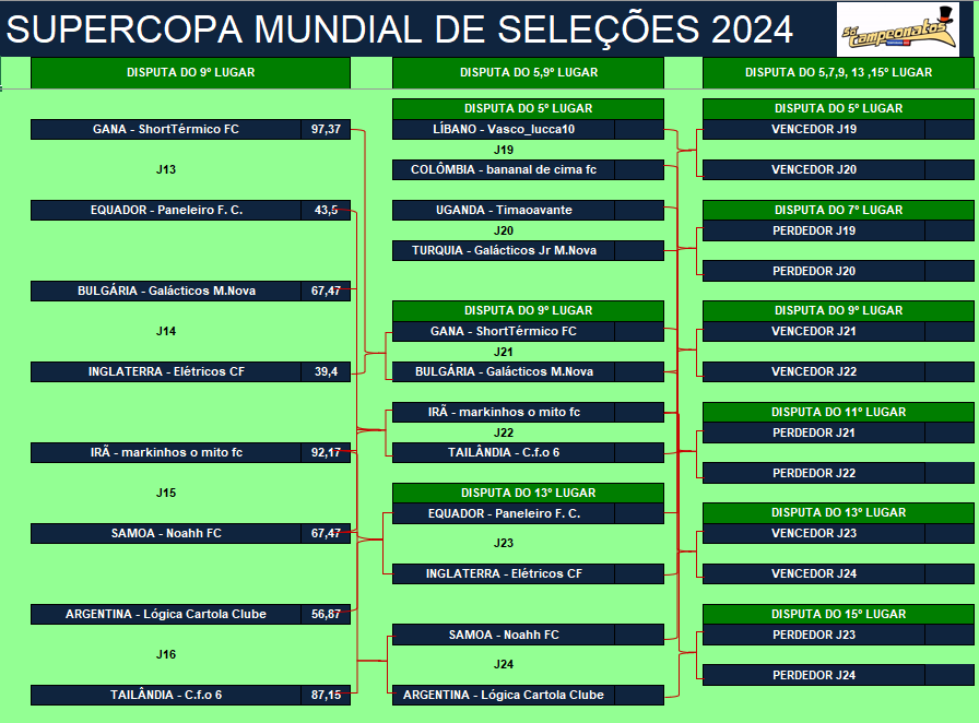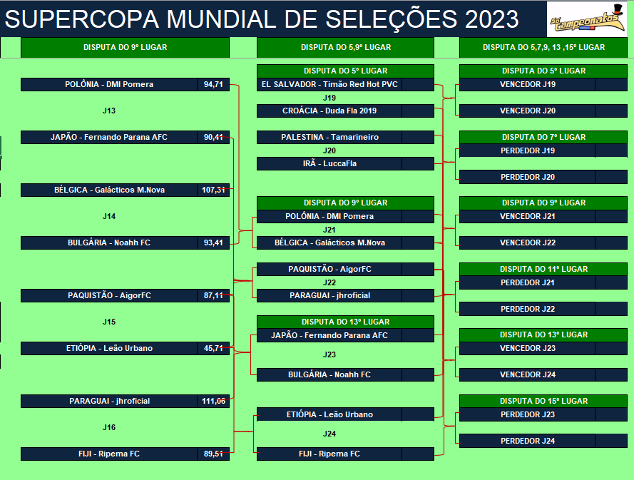 SUPERCOPA MUNDIAL DE SELEÇÕES – MATA MATA – FINAL e DISPUTA DO 3º,5º,7º,9º,11º,13º e 15º LUGAR Publicado em 08/12/2023 por socampeonatos
