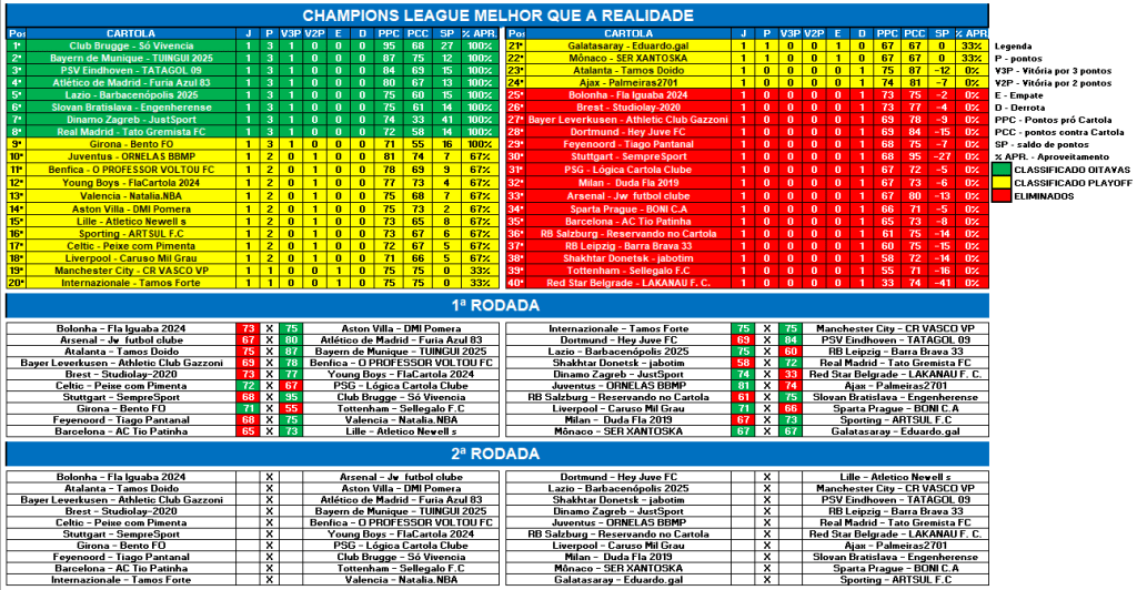 CHAMPIONS LEAGUE MELHOR QUE A REALIDADE – FASE 1 – ÚLTIMA RODADA