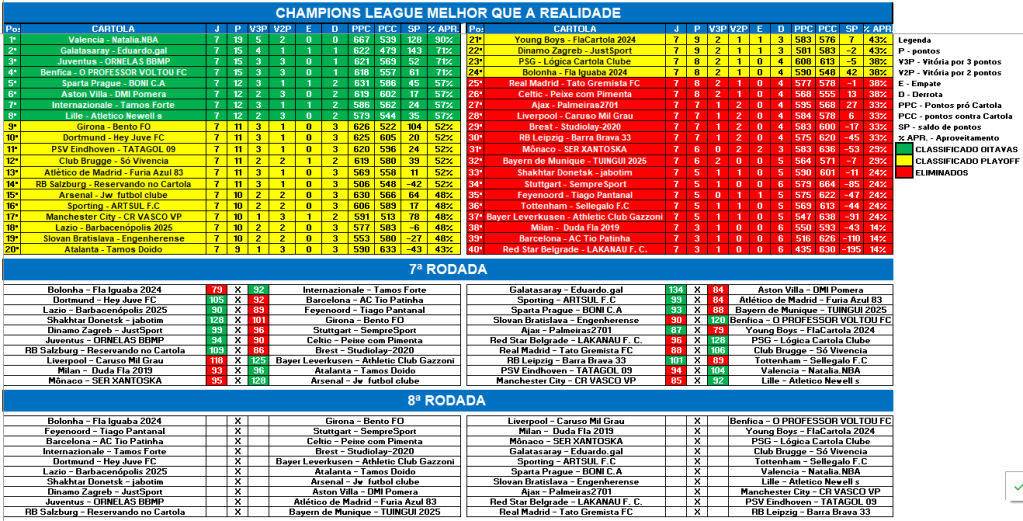 CHAMPIONS LEAGUE MELHOR QUE A REALIDADE – FASE 1 – RODADA 7