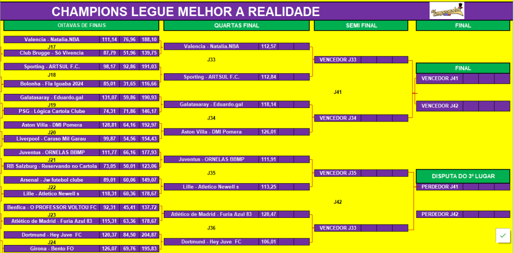 CHAMPIONS LEAGUE MELHOR QUE A REALIDADE – FASE MATA MATA – FINAL e DISPUTA DO 3º,5º e 7º LUGAR – VOLTA