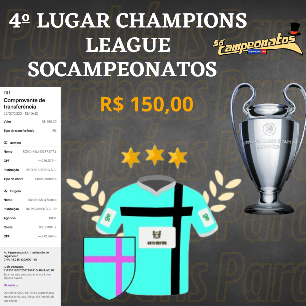 CHAMPIONS LEAGUE MELHOR QUE A REALIDADE – FASE 1 – RODADA 4 Publicado em 18/04/2025 por socampeonatos
