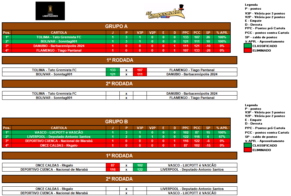 LIBERTADORES SOCAMPEONATOS – FASE MATA MATA – FASE 1 – VOLTA Publicado em 02/06/2025 por socampeonatos