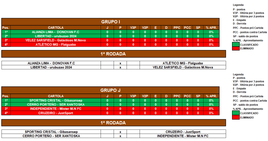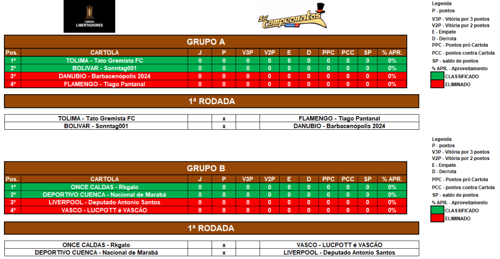 LIBERTADORES SOCAMPEONATOS – FASE MATA MATA – QUARTAS DE FINAIS Publicado em 02/07/2024 por socampeonatos
