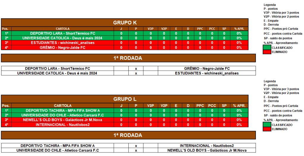 LIBERTADORES SOCAMPEONATOS – FASE MATA MATA – SEMI FINAL e 5º LUGAR Publicado em 05/07/2024 por socampeonatos