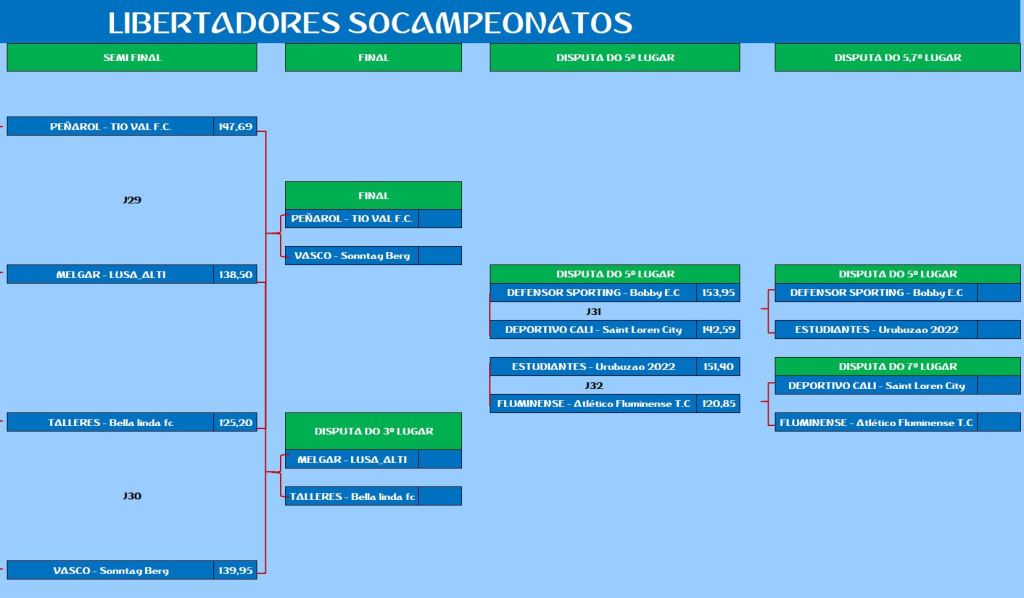 LIBERTADORES SOCAMPEONATOS- FINAL, 3º,5º,7º LUGAR