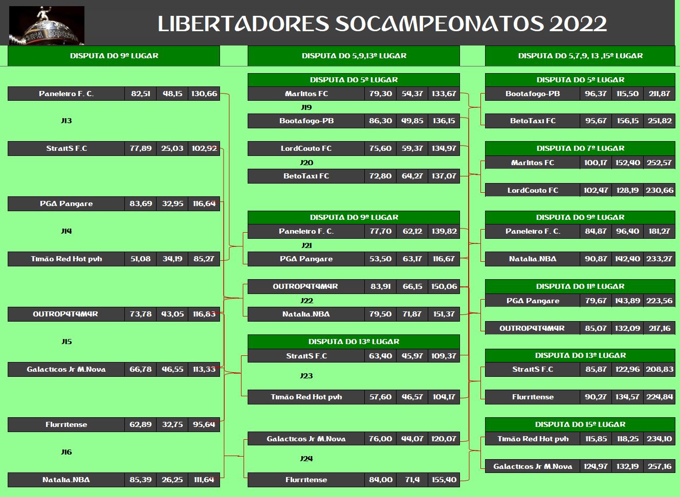 LIBERTADORES SOCAMPEONATOS- FINAL, 3º,5º,7º LUGAR