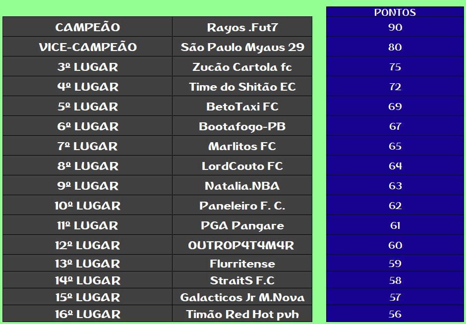 II – Pontos pró Cartola (pontos feitos no cartola);
