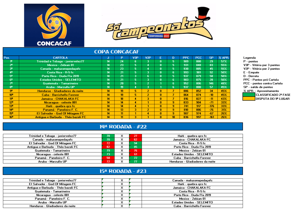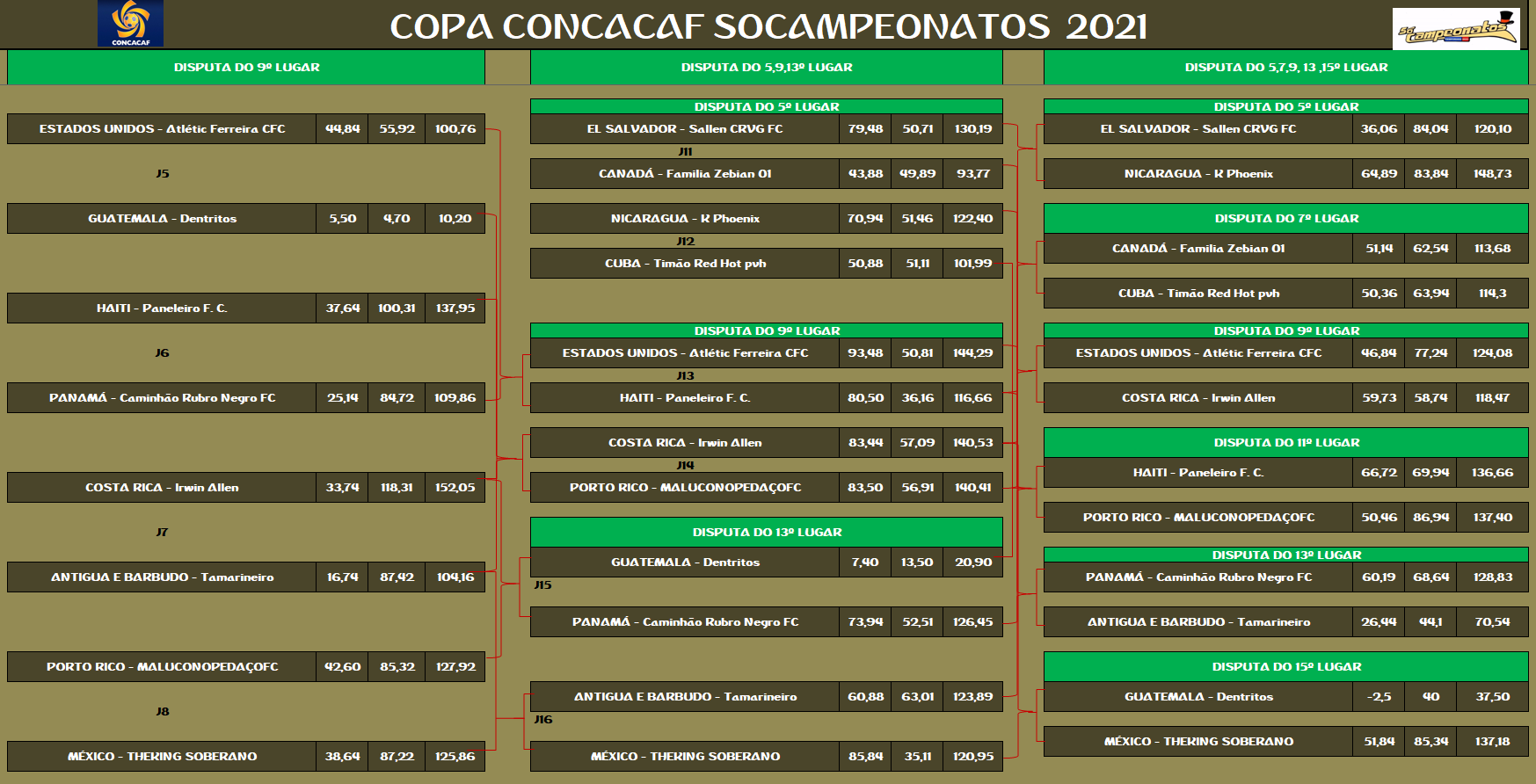 COPA CONCACAF – SEMI FINAL E DISPUTA DO 5º, 9º, 13º LUGAR – VOLTA Publicado em 19/10/2021 por socampeonatos