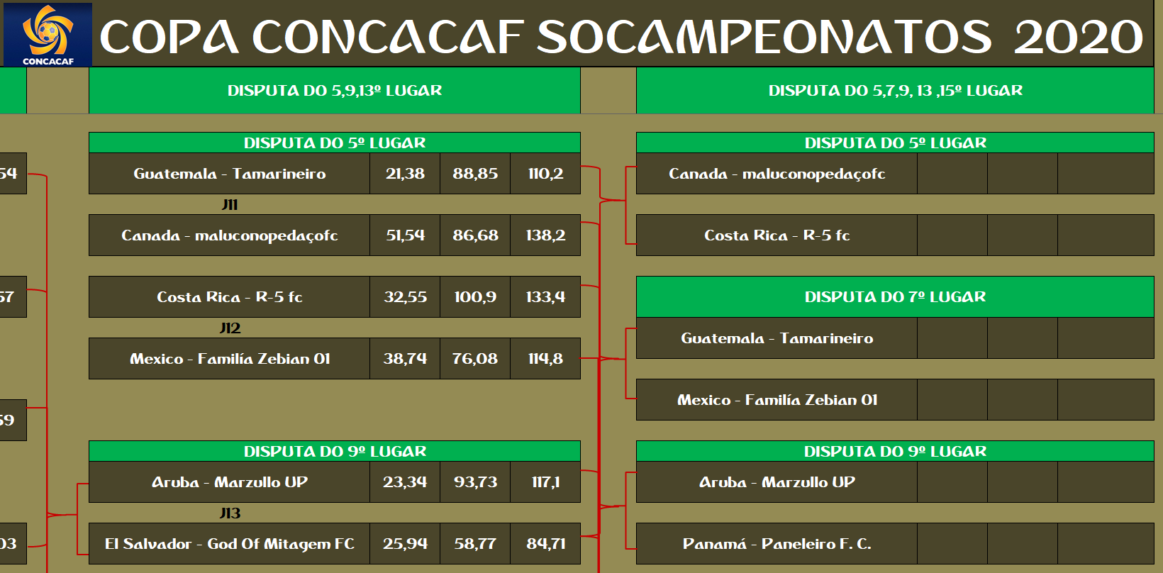 COPA CONCACAF – SEMI FINAL, DISPUTA DO 5º,9º,13º LUGAR – VOLTA Publicado em 28/12/2020 por socampeonatos