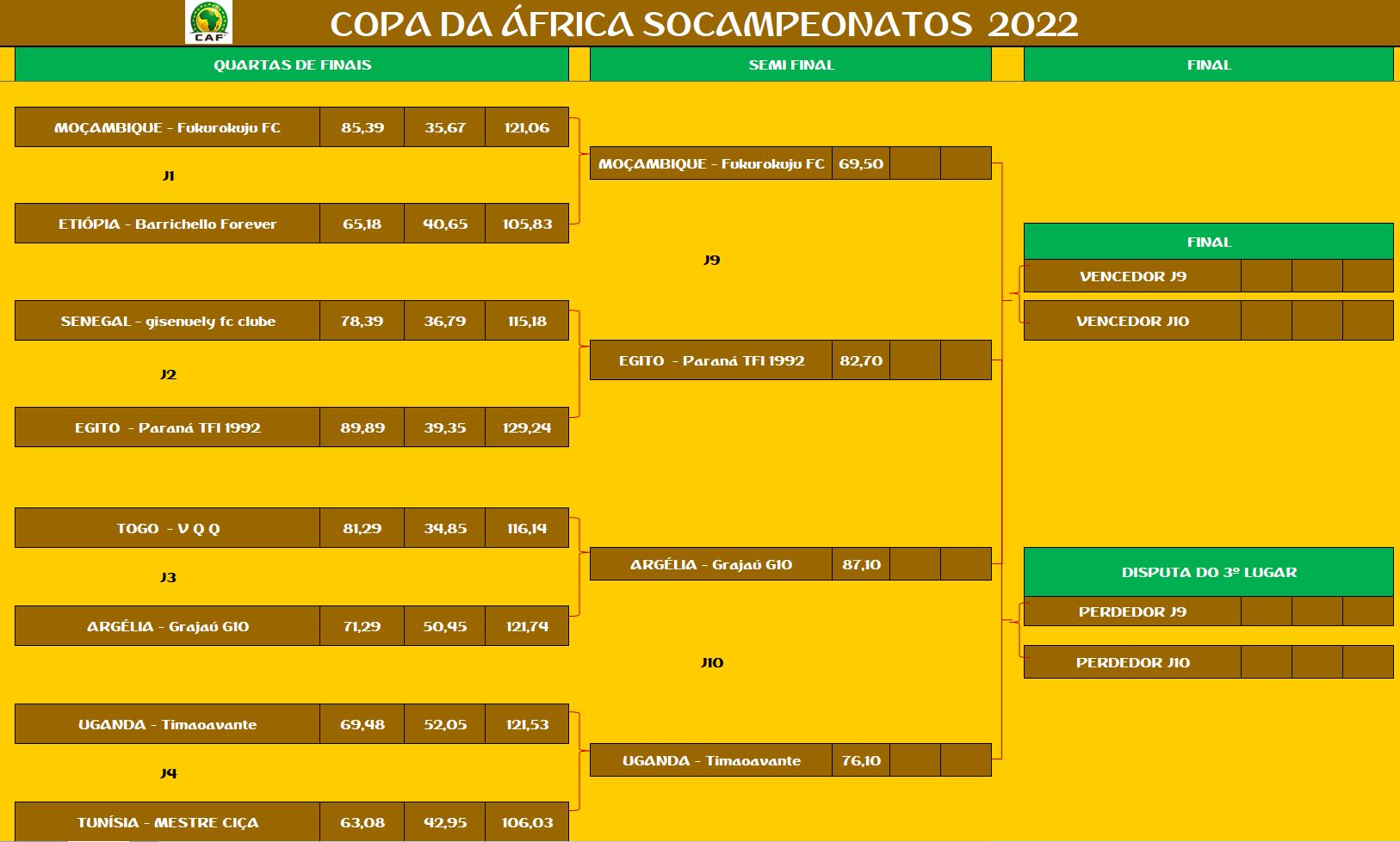 COPA DA ÁFRICA – QUARTAS DE FINAIS e DISPUTA DO 9º LUGAR – VOLTA Publicado em 06/09/2022 por socampeonatos