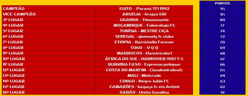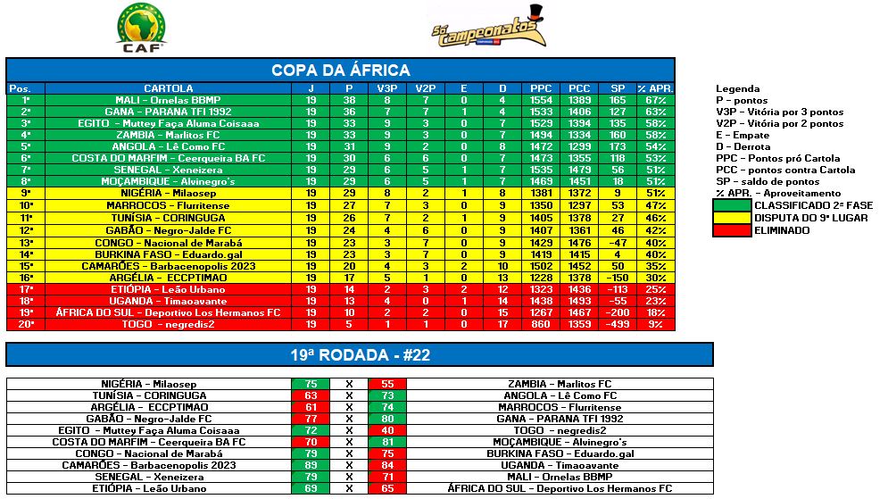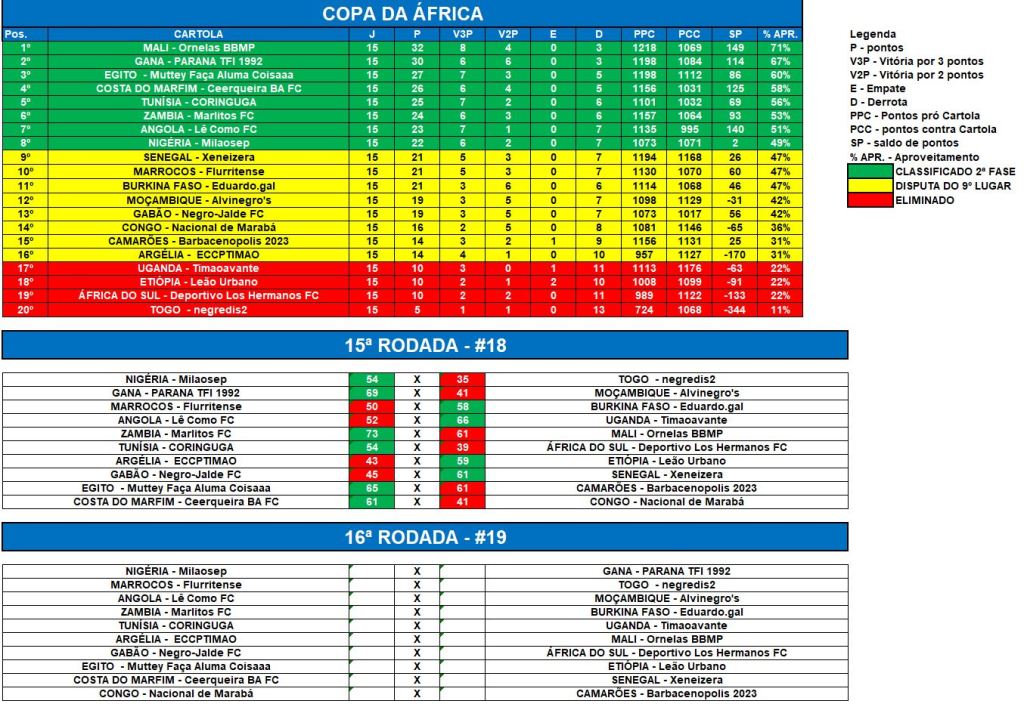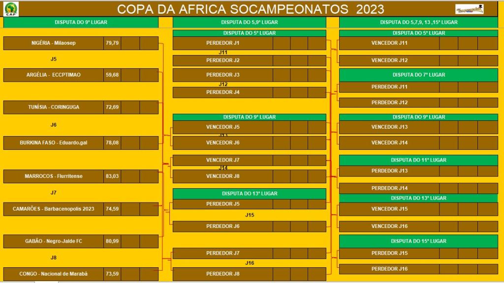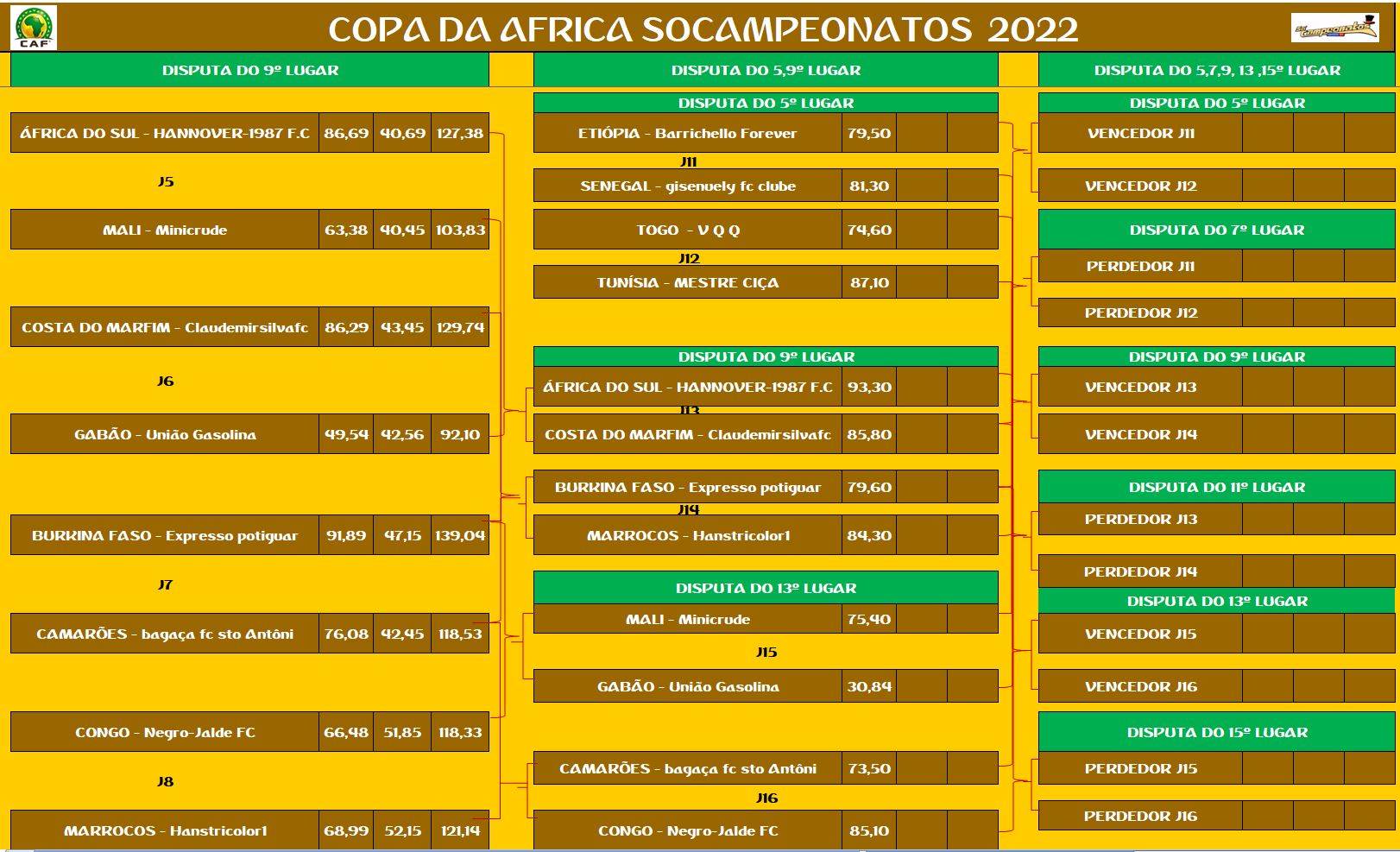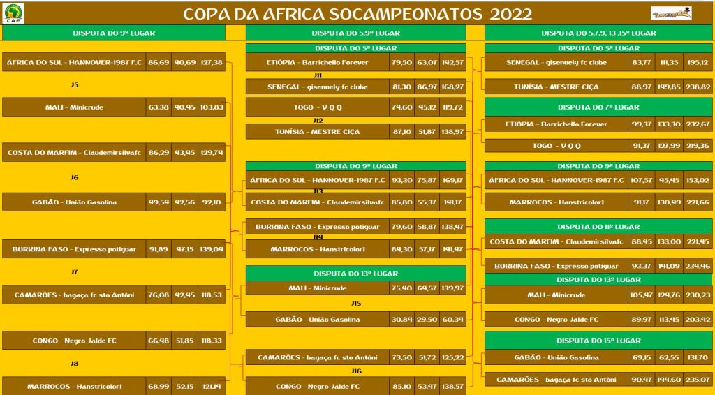 COPA DA ÁFRICA – SEMI FINAL e DISPUTA DO 3º,5º,7º,9º,11º,13º e 15º LUGAR – VOLTA Publicado em 04/10/2022 por socampeonatos