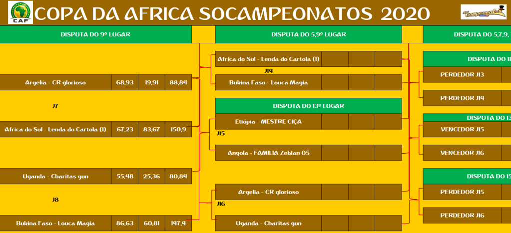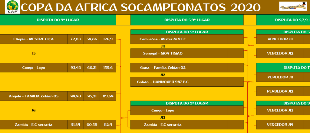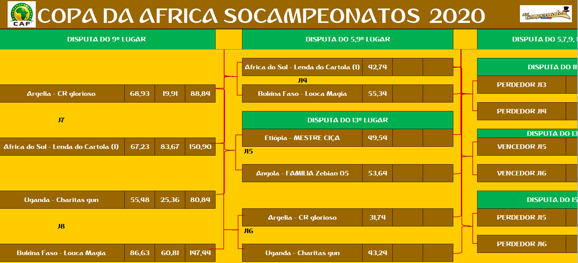 COPA DA ÁFRICA – SEMI FINAL, DISPUTA DO 5º,9º,13º LUGAR – IDA Publicado em 22/12/2020 por socampeonatos
