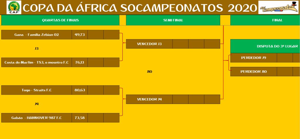 COPA DA ÁFRICA – QUARTAS DE FINAIS E DISPUTA DO 9º LUGAR – IDA Publicado em 08/12/2020 por socampeonatos