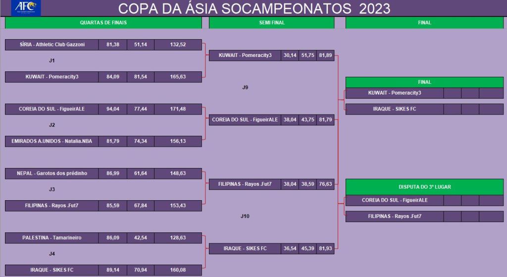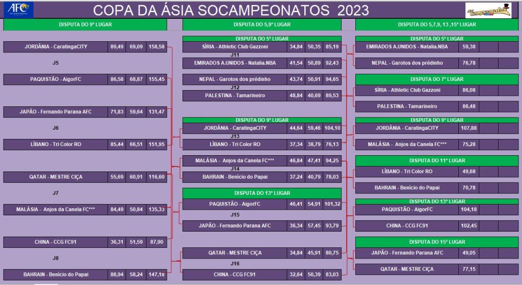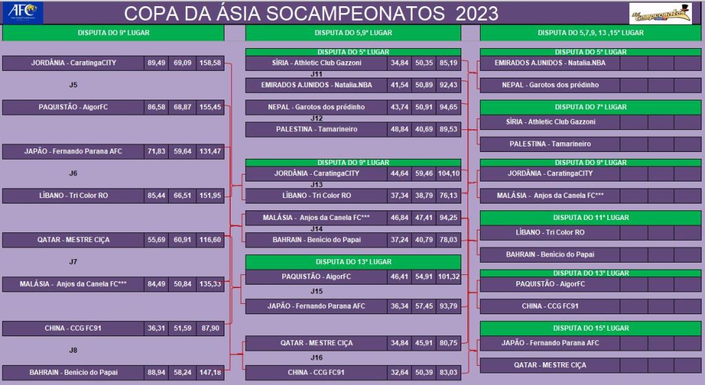 COPA DA ÁSIA – QUARTAS DE FINAIS e DISPUTA DO 5º LUGAR- VOLTA