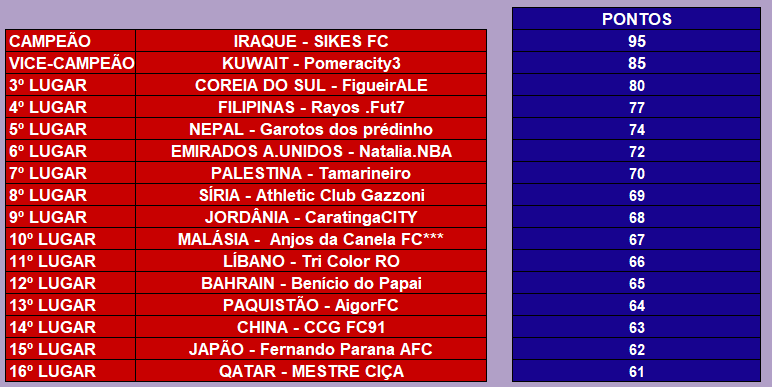 COPA DA ÁSIA – RODADA 12