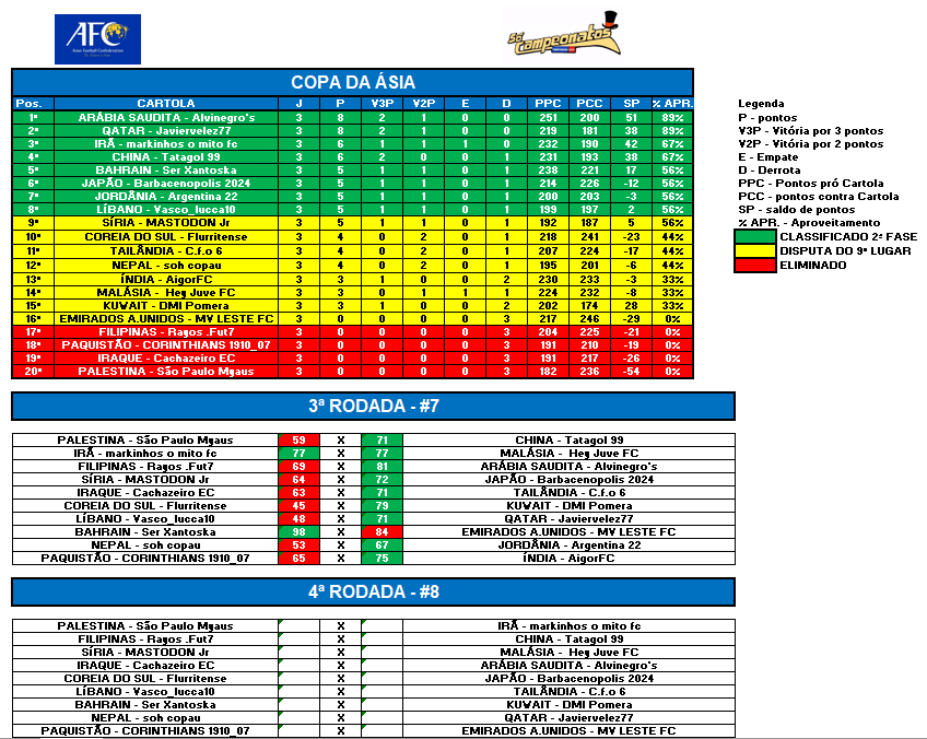COPA DA ÁSIA – RODADA 3