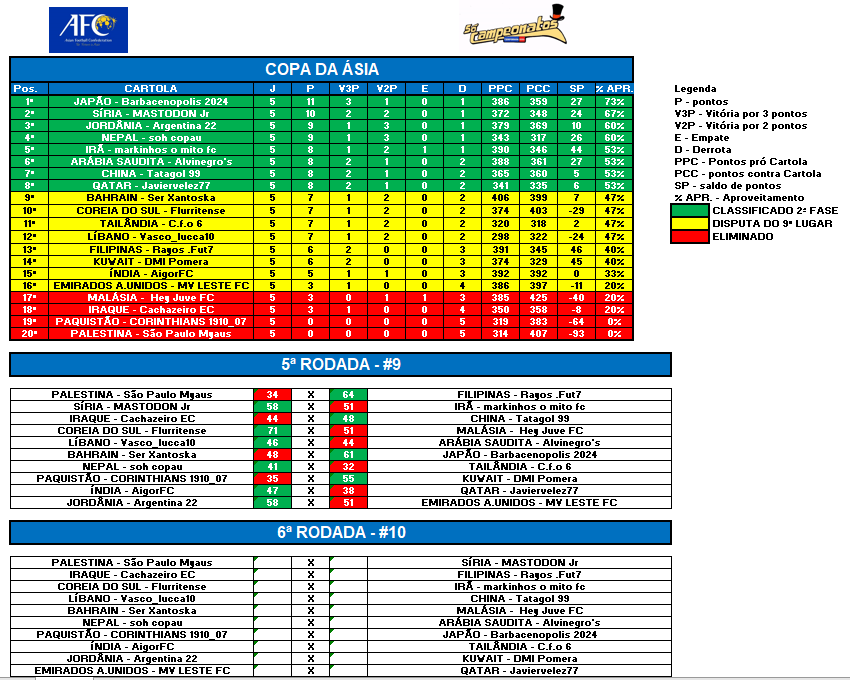 COPA DA ÁSIA – RODADA 6