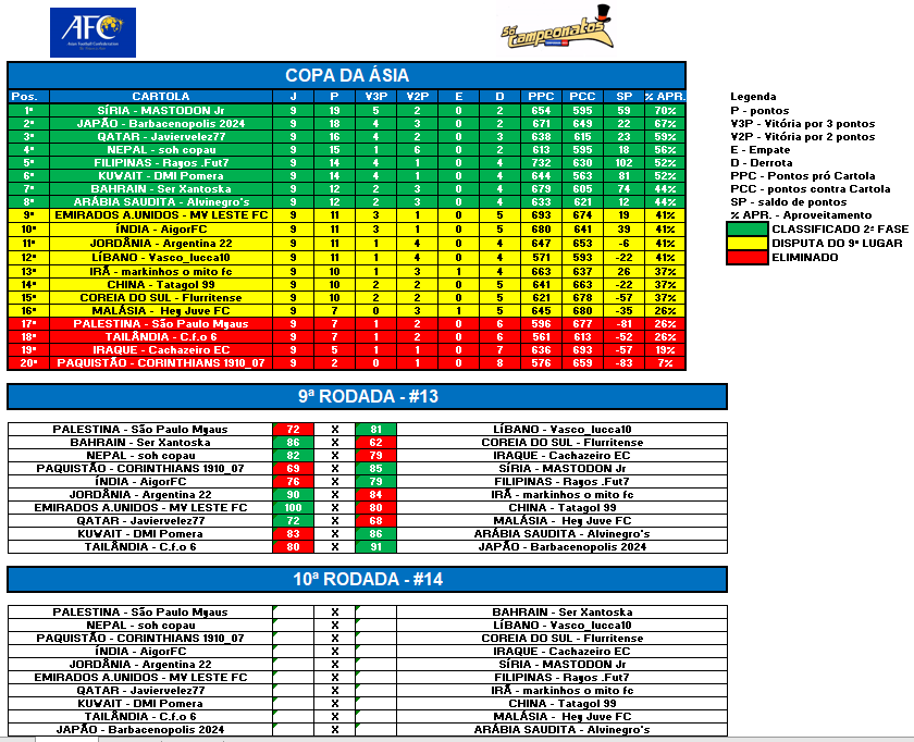 COPA DA ÁSIA – RODADA 13