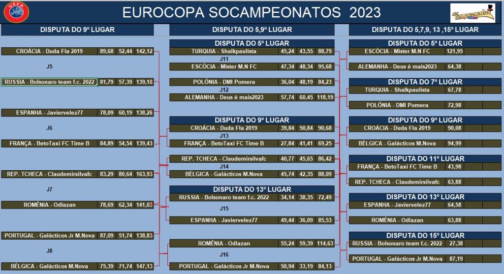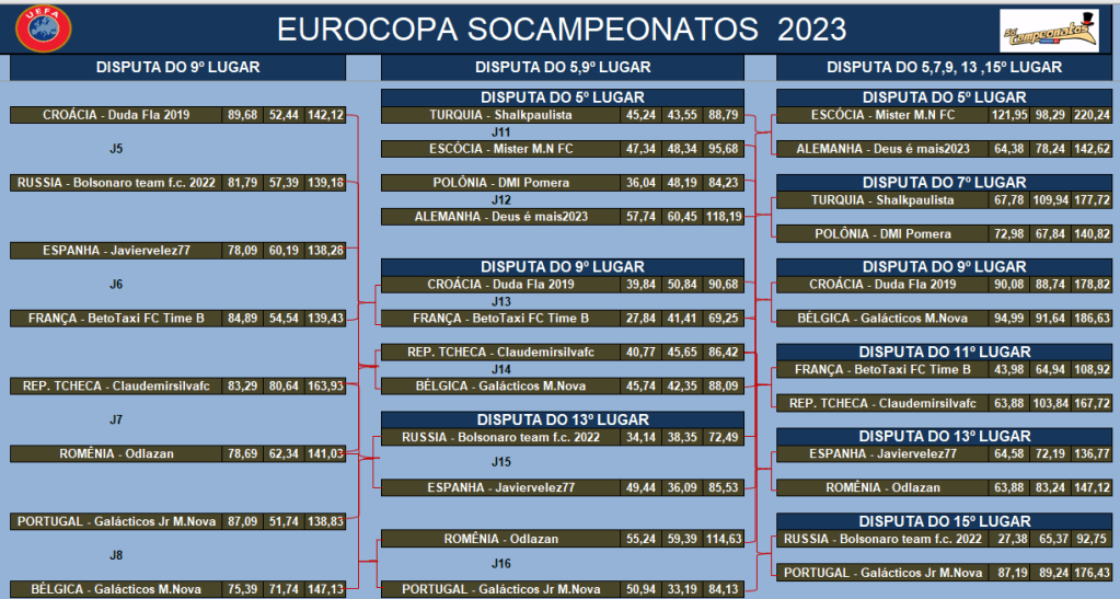 EUROCOPA – FINAL e DISPUTA DO 3º,5º,7°,9º,11º,13ºe 15º LUGAR – VOLTA Publicado em 27/10/2023 por socampeonatos