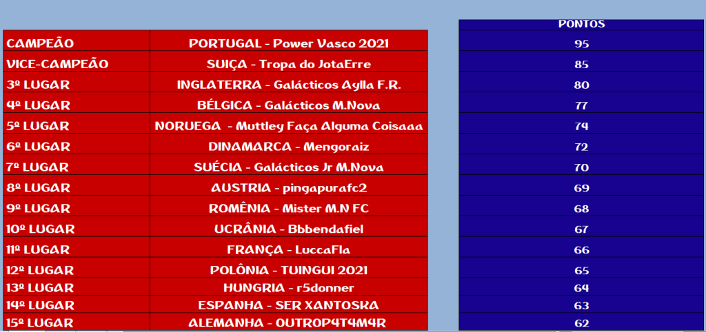 EUROCOPA – FINAL E DISPUTA DO 3º, 5º, 7º, 9º, 11º, 13º, 15º LUGAR – VOLTA Publicado em 03/11/2021 por socampeonatos