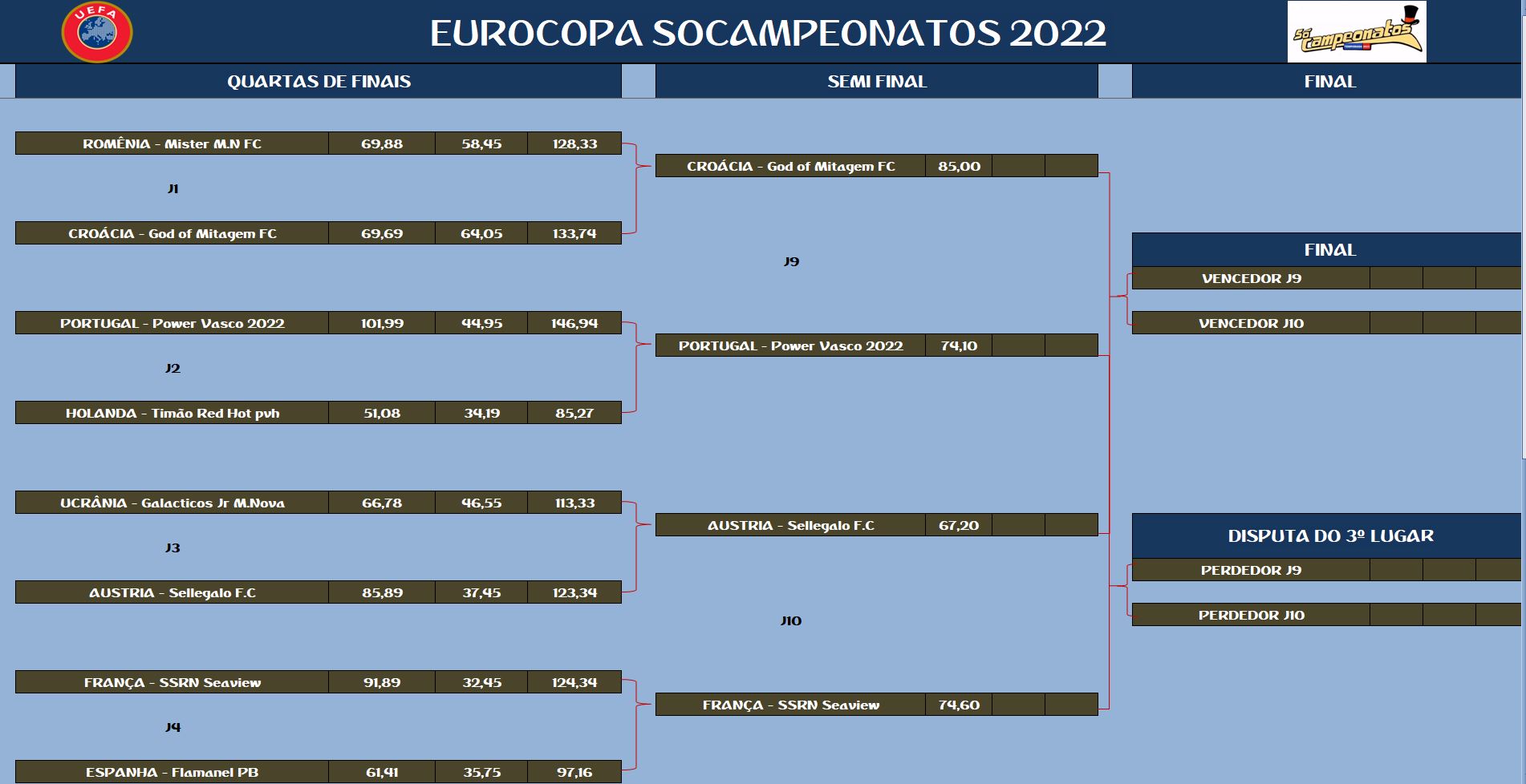 EUROCOPA – SEMI FINAL E DISPUTA DO 5º, 9º, 13º LUGAR – VOLTA Publicado em 19/10/2021 por socampeonatos