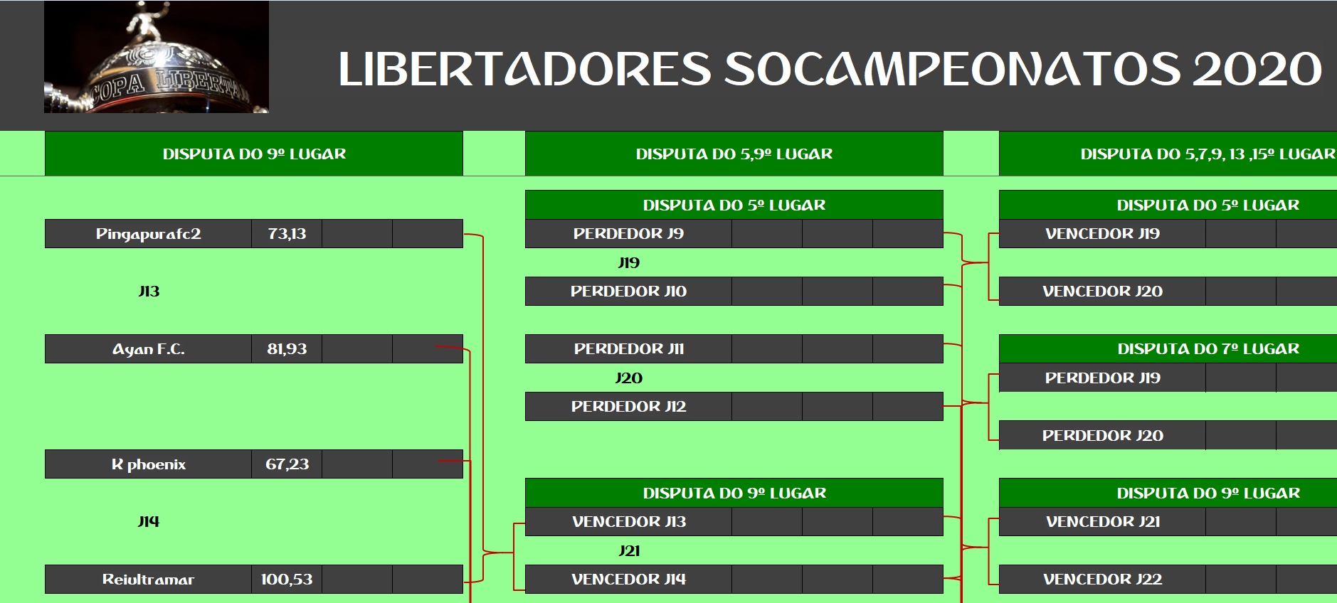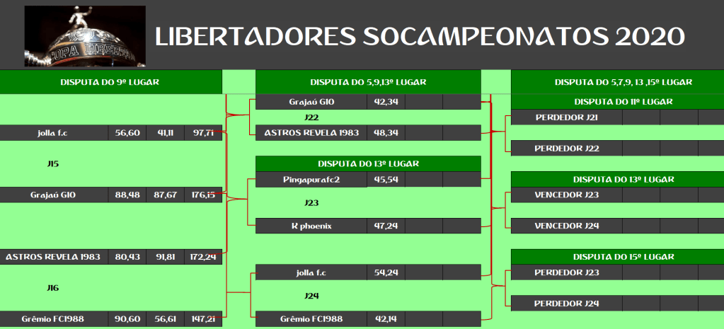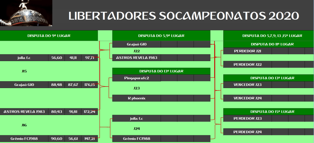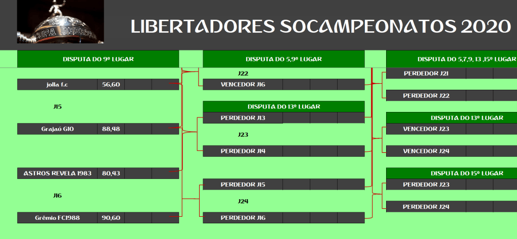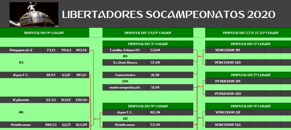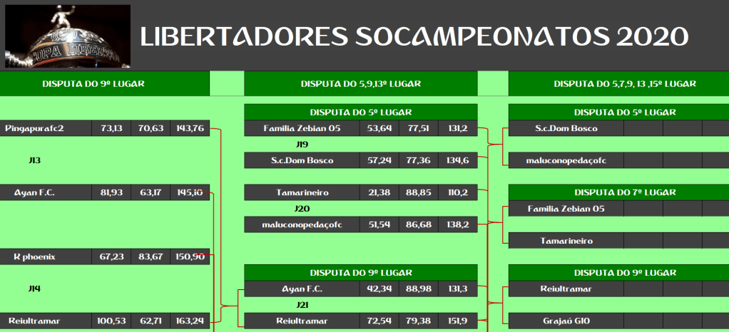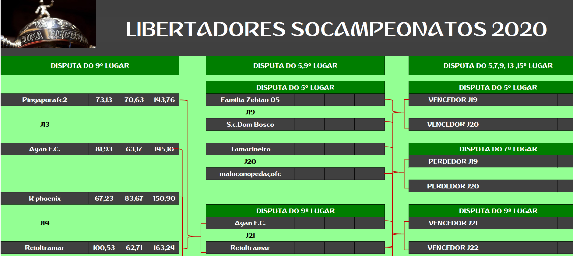 LIBERTADORES – SEMI FINAL, DISPUTA DO 5º,9º,13º LUGAR – IDA Publicado em 22/12/2020 por socampeonatos