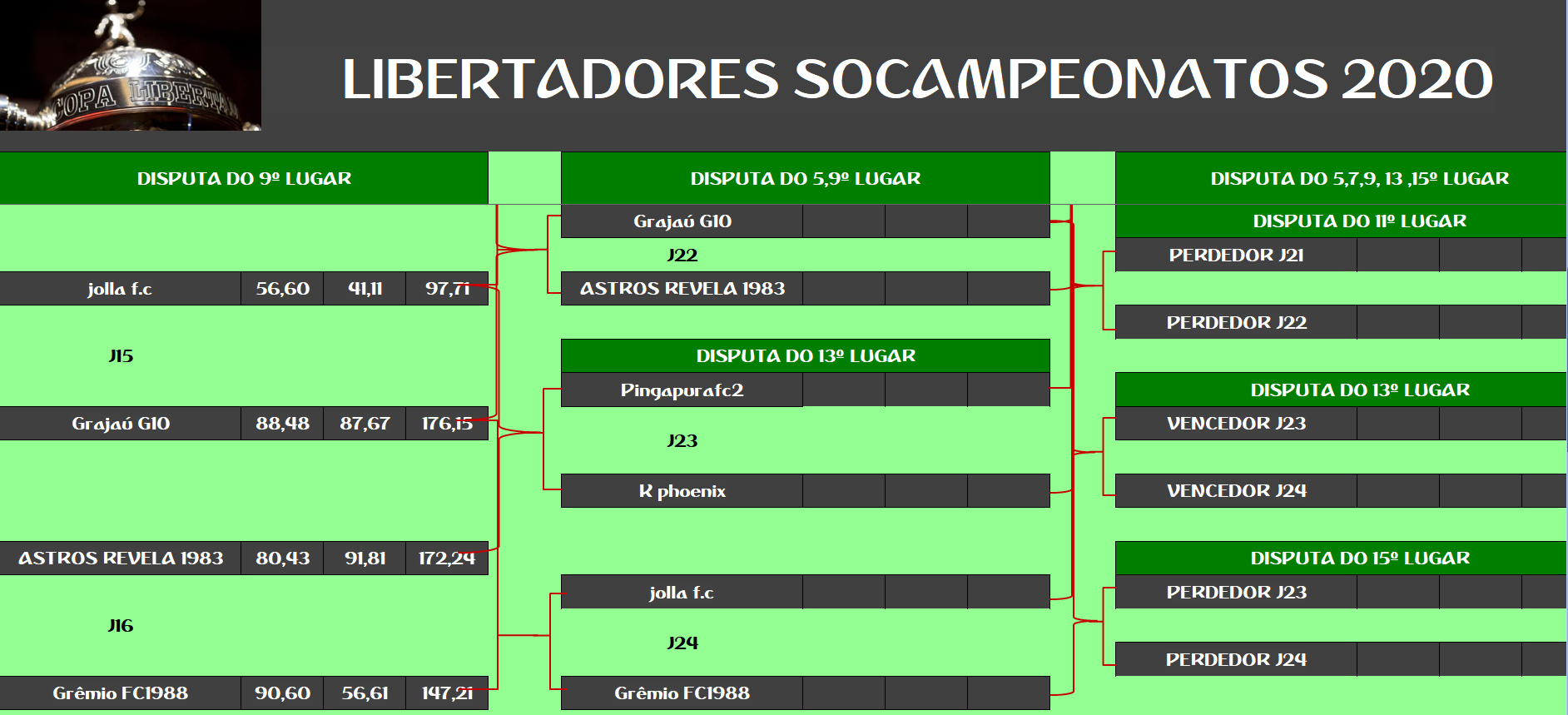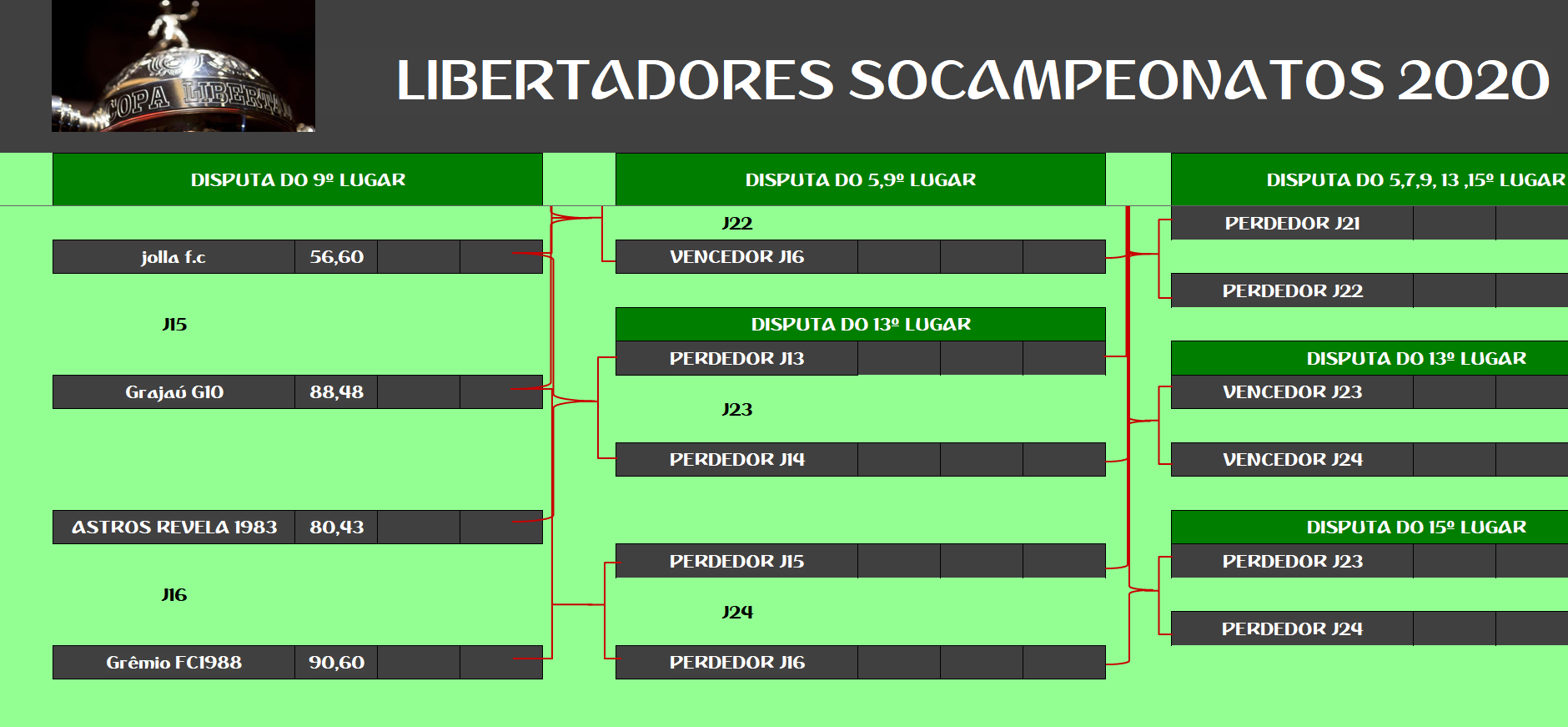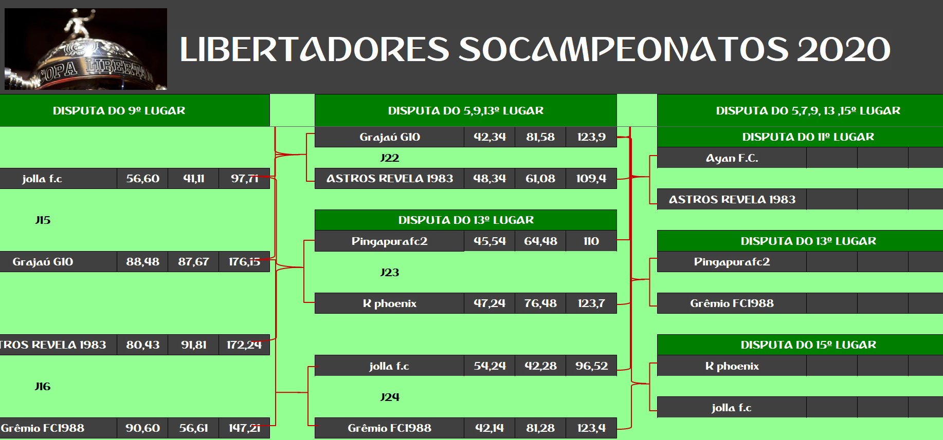 LIBERTADORES – FINAL, DISPUTA DO 3º,5º,7º,9º,11º,13º,15º LUGAR – VOLTA Publicado em 12/01/2021 por socampeonatos