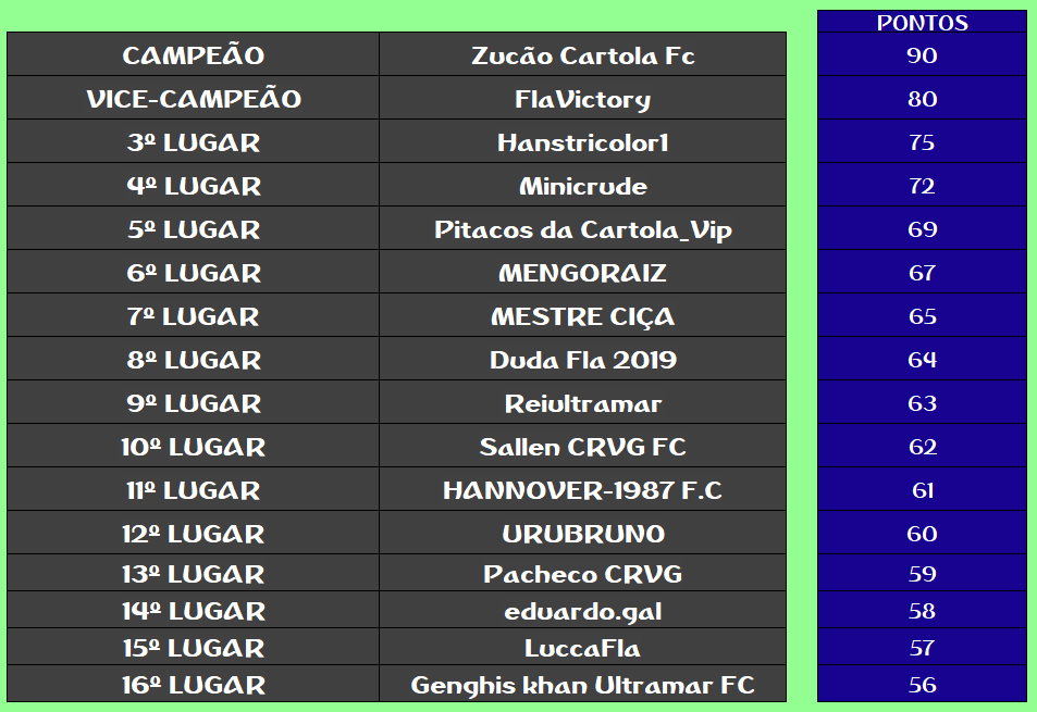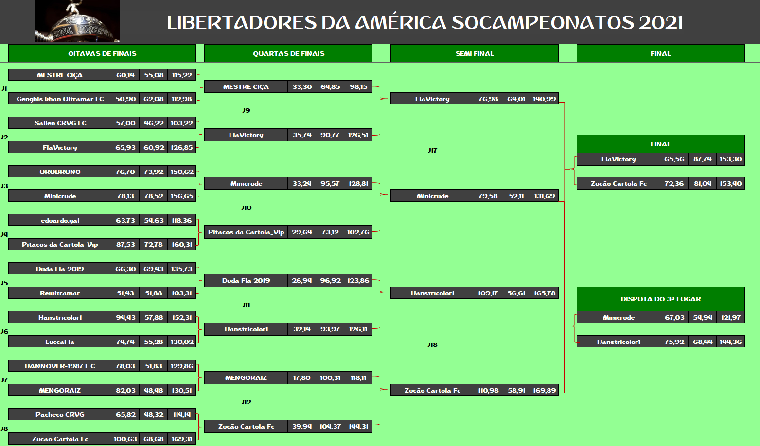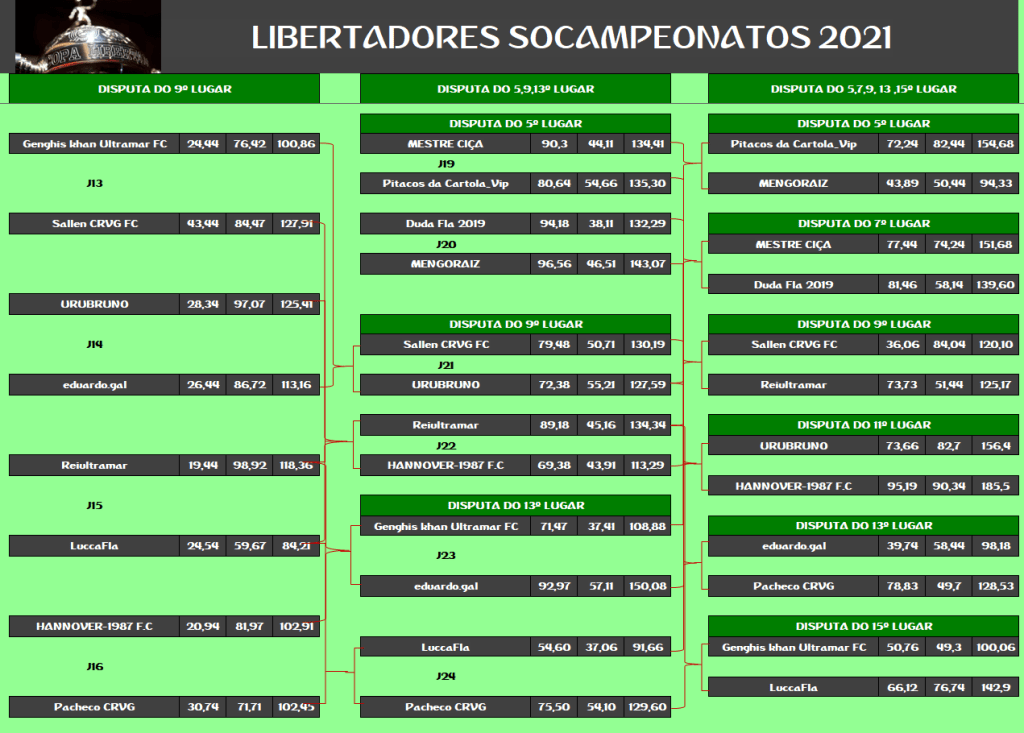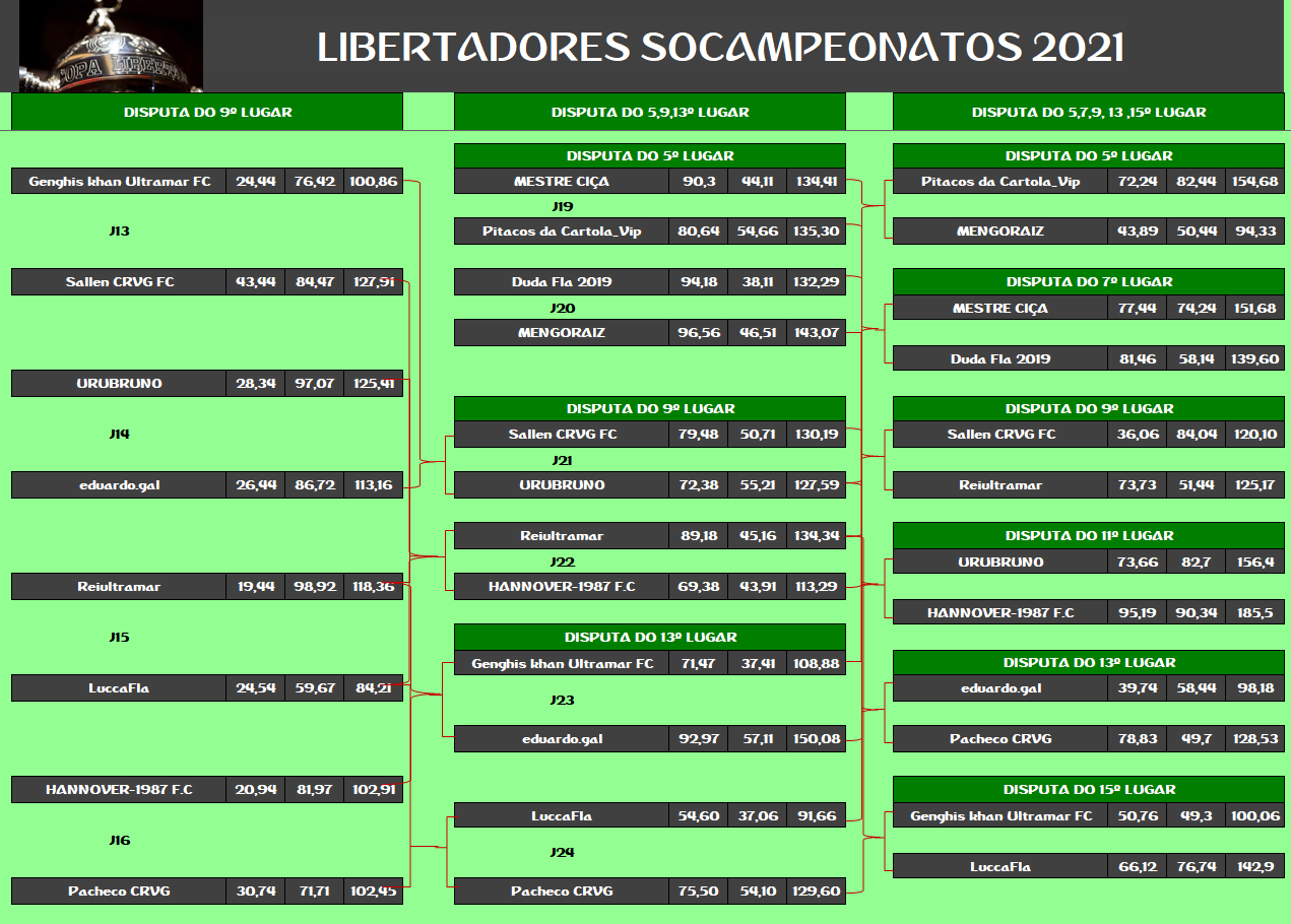 LIBERTADORES – FINAL, DISPUTA DO 3º,5º,7º,9º,11º,13º,15º LUGAR – VOLTA Publicado em 12/01/2021 por socampeonatos