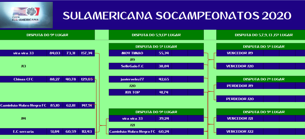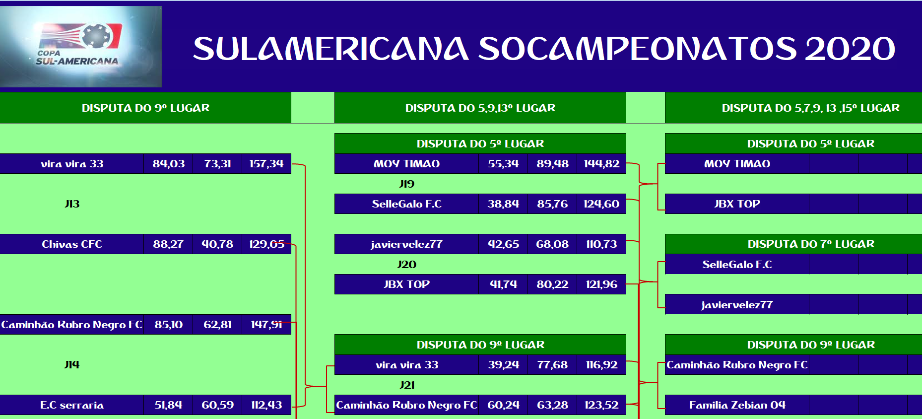 SULAMERICANA – FINAL, DISPUTA DO 15º,13º,11º,9º,7º,5º,3º LUGAR