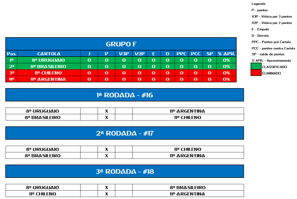 TABELA COPA DO URUGUAI