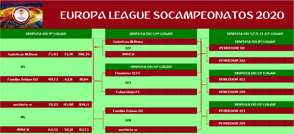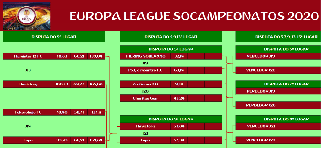 EUROPA LEAGUE –FINAL, DISPUTA DO 15º,13º,11º,9º,7º,5º,3º LUGAR – VOLTA