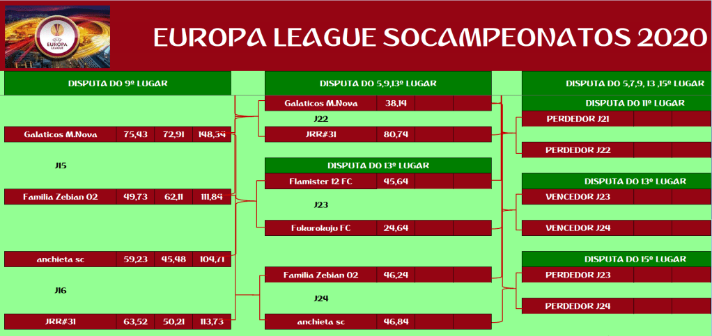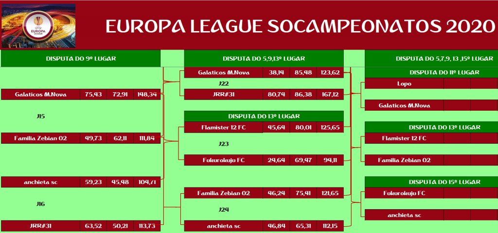 EUROPA LEAGUE –FINAL, DISPUTA DO 15º,13º,11º,9º,7º,5º,3º LUGAR