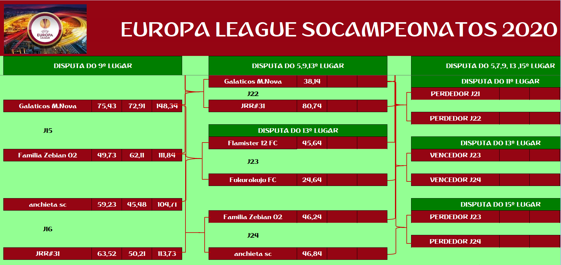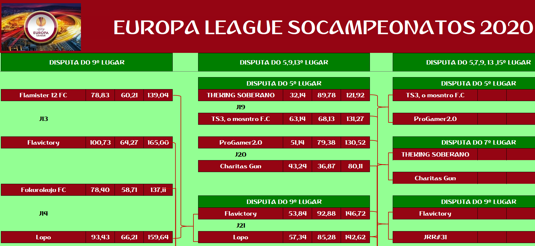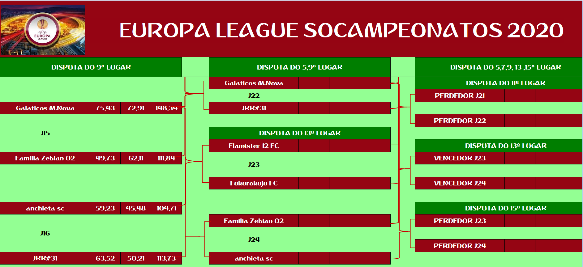 EUROPA LEAGUE –FINAL, DISPUTA DO 15º,13º,11º,9º,7º,5º,3º LUGAR