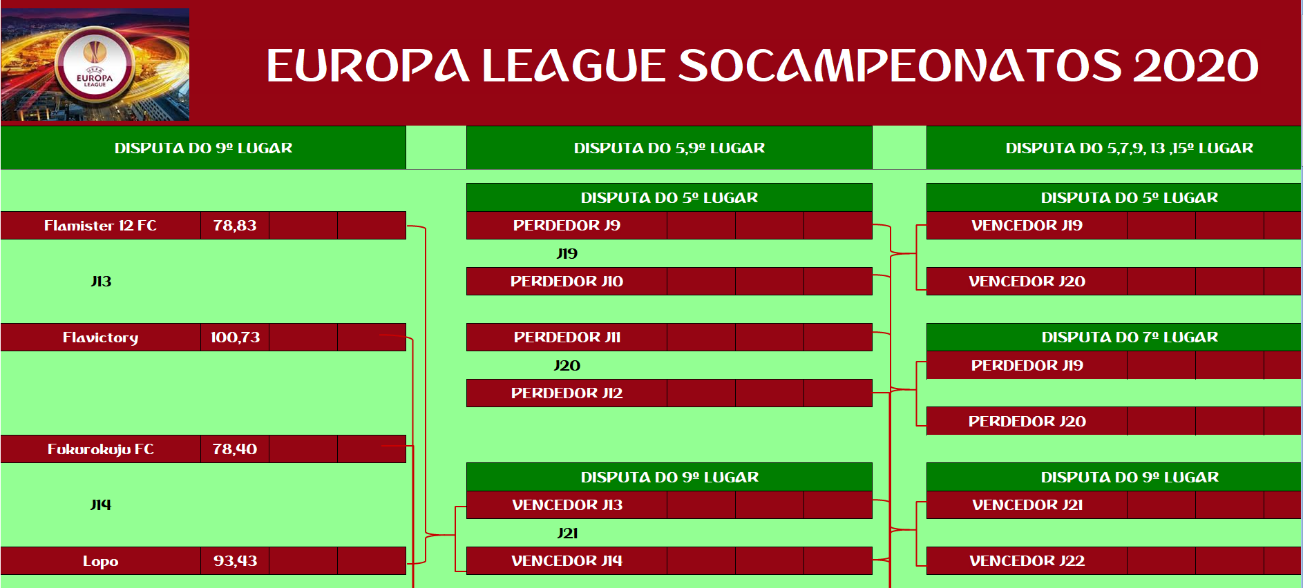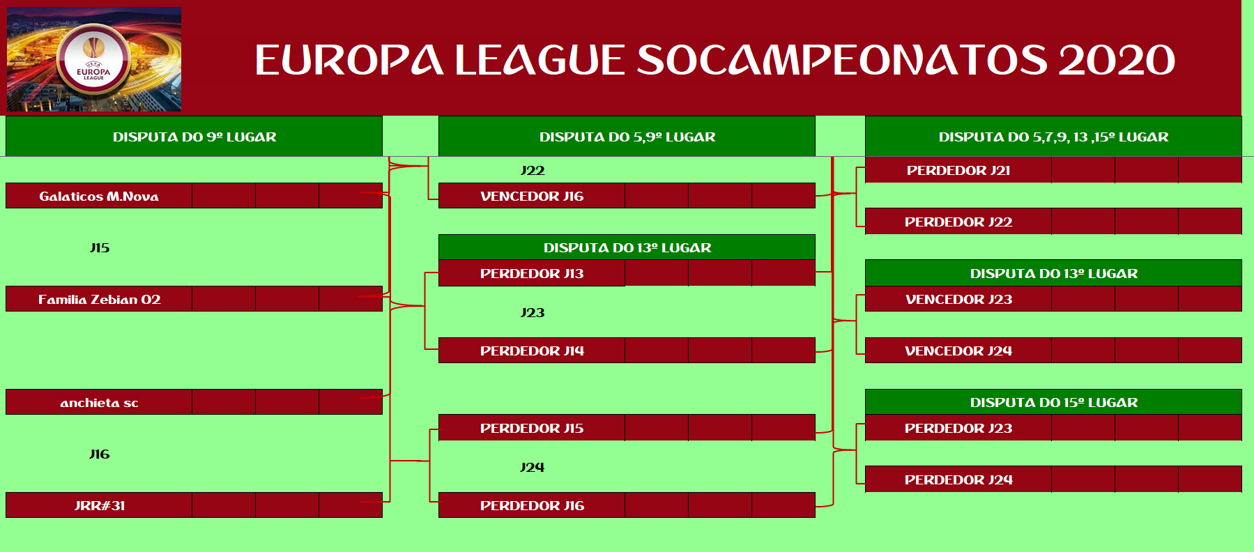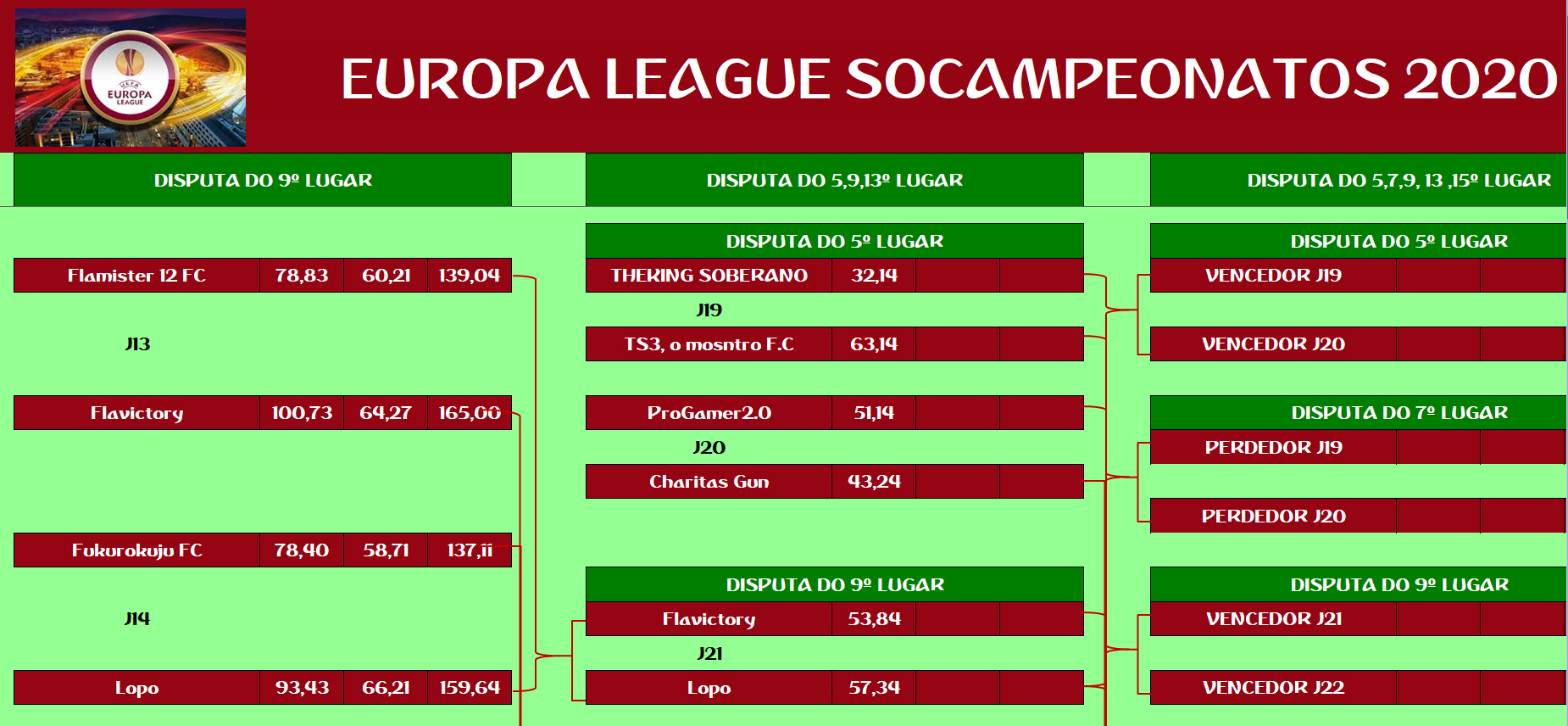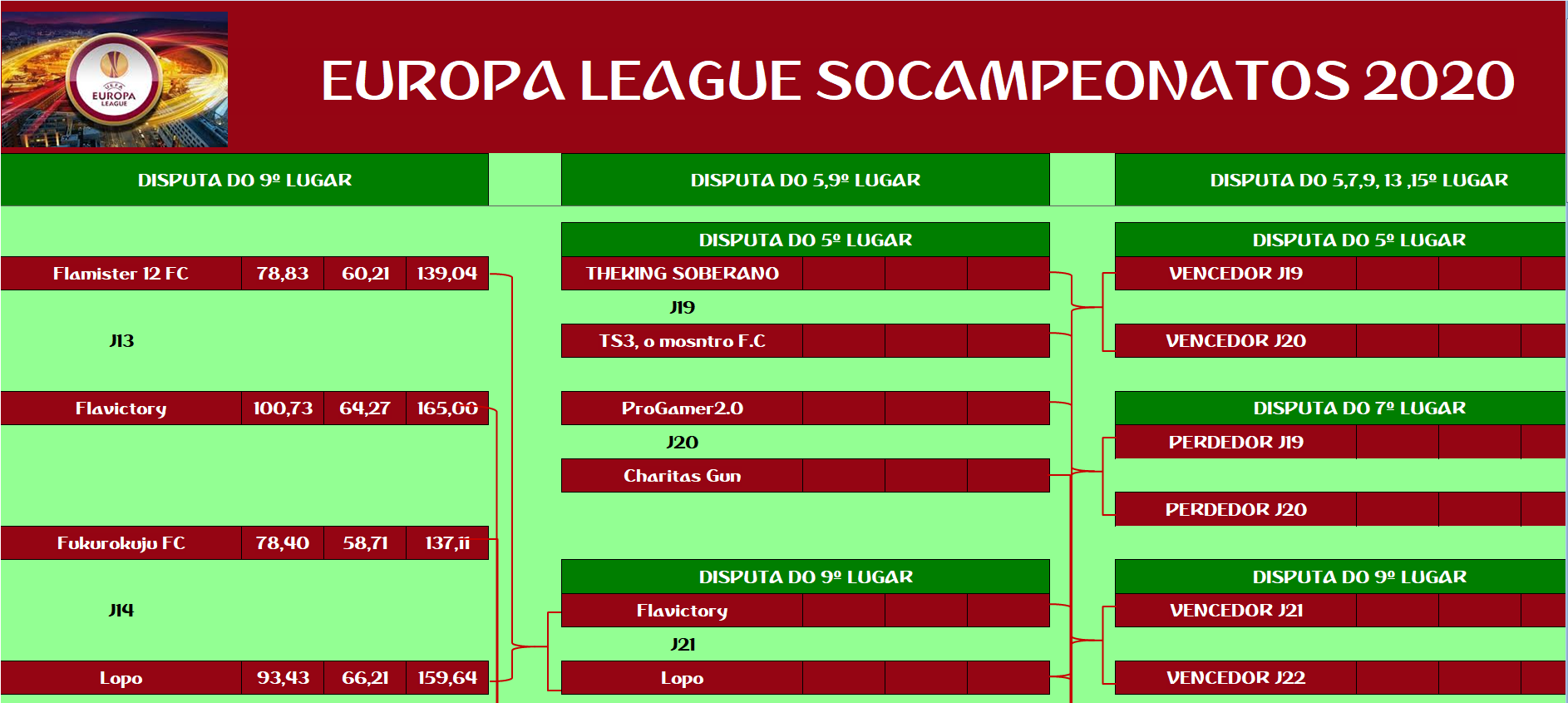 EUROPA LEAGUE –FINAL, DISPUTA DO 15º,13º,11º,9º,7º,5º,3º LUGAR