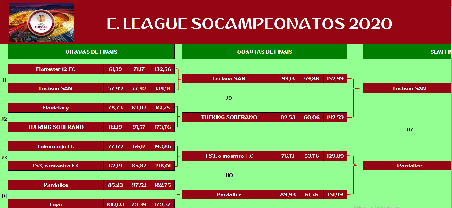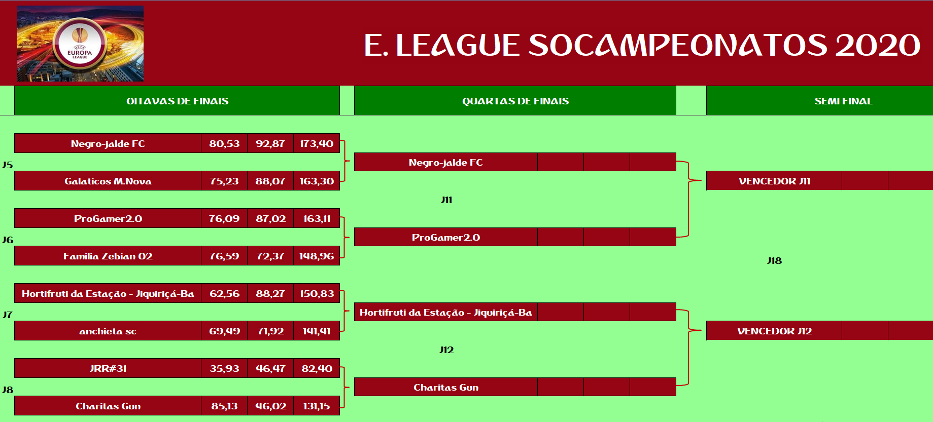 EUROPA LEAGUE – SEMI FINAL, DISPUTA DO 13º,9º,5º LUGAR – VOLTA