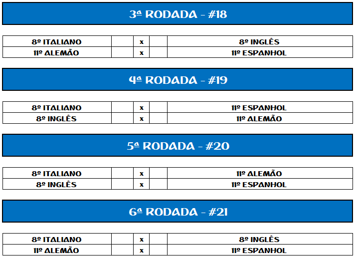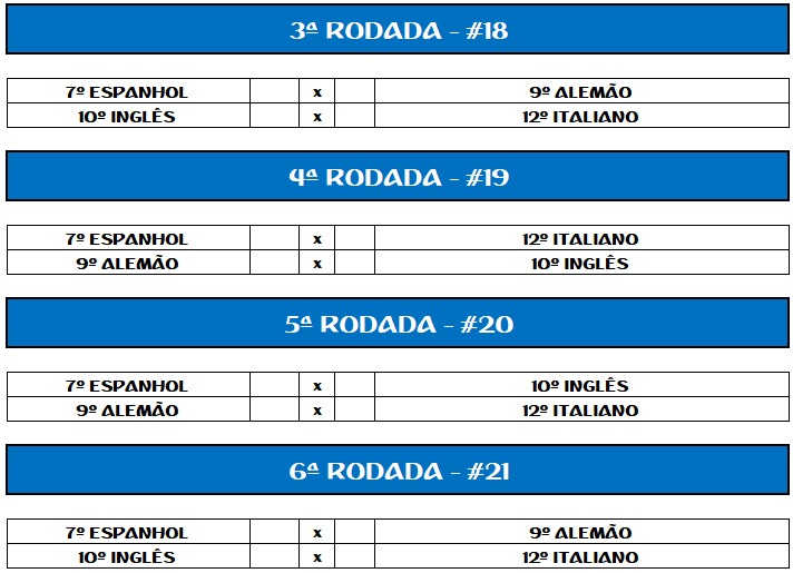CLASSIFICAÇÃO DISPUTAS DOS CAMPEONATOS