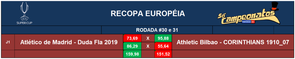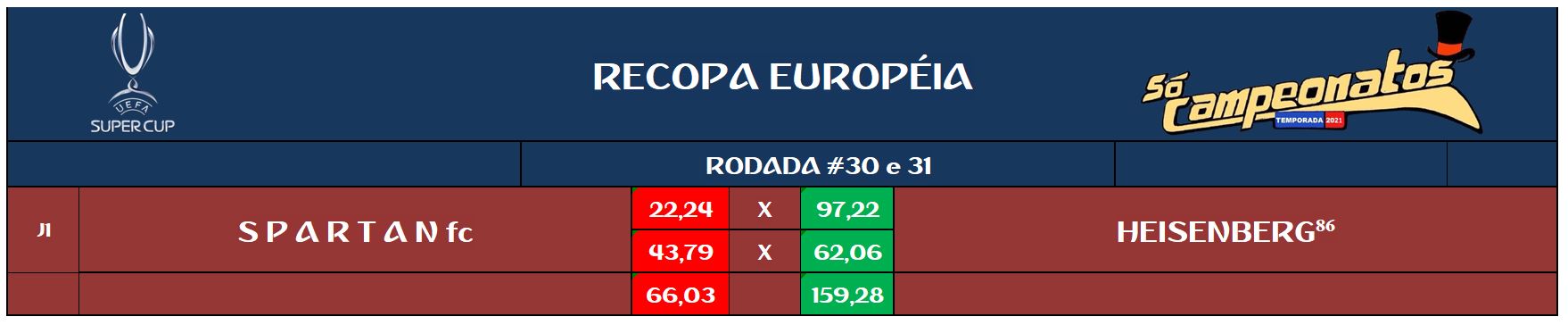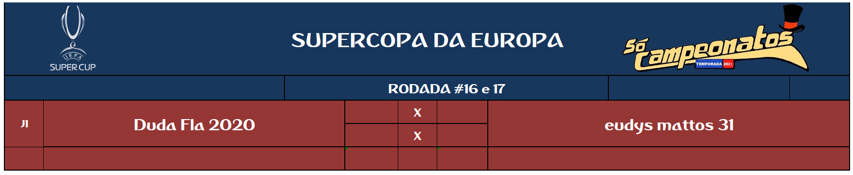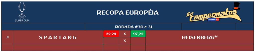 4 – Será disputado uma Final de 2 jogos pelo Campeão do Champions League contra o Campeão da Europa League, quem soma o maior pontuação no cartola vence a competição;