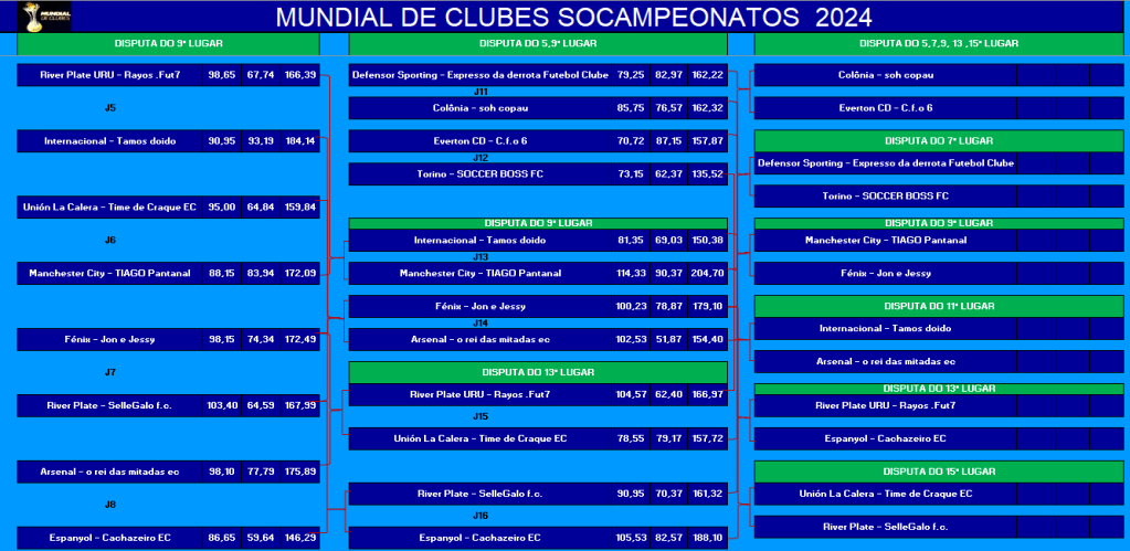 COPA DO MUNDO DA TEMPORADA – SEMI FINAL, DISPUTAS DO 3º,5º,9º LUGARES Publicado em 06/12/2024 por socampeonatos
