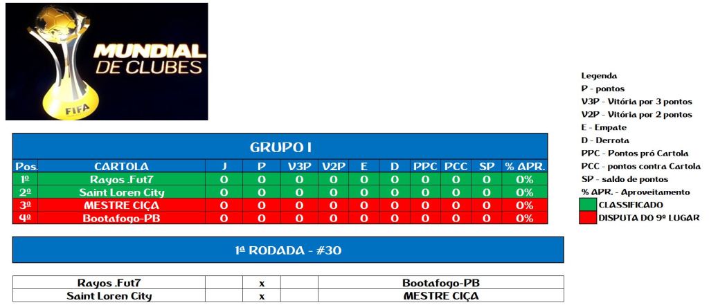 MUNDIAL DE CLUBES – SEMI FINAL e DISPUTA DO 5º,9º,13º LUGAR – IDA Publicado em 03/11/2022 por socampeonatos