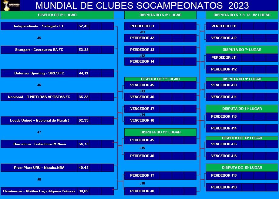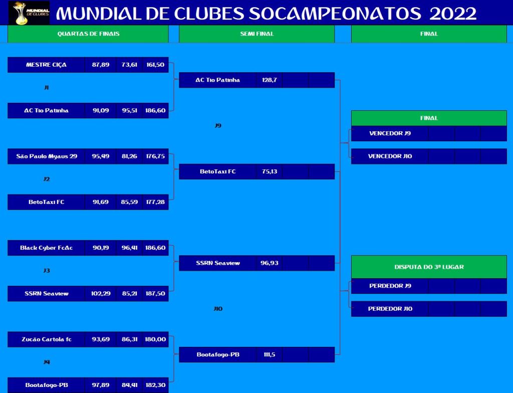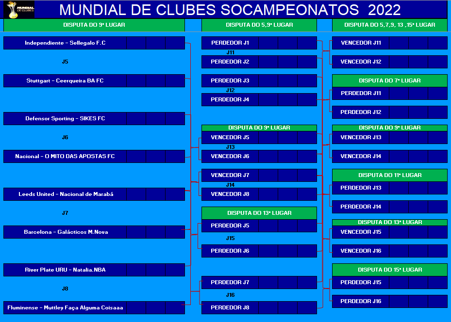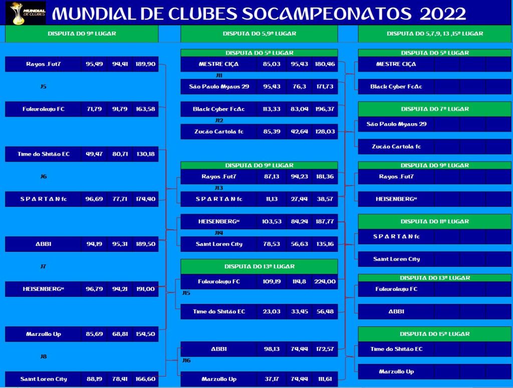 MUNDIAL DE CLUBES – SEMI FINAL e DISPUTA DO 3º,5º,7º,9º,11º,13º,15º LUGAR – VOLTA Publicado em 15/11/2022 por socampeonatos
