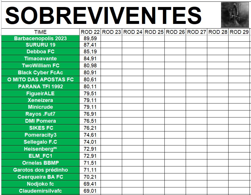 SOBREVIVENTES DA TEMPORADA – RODADA 7