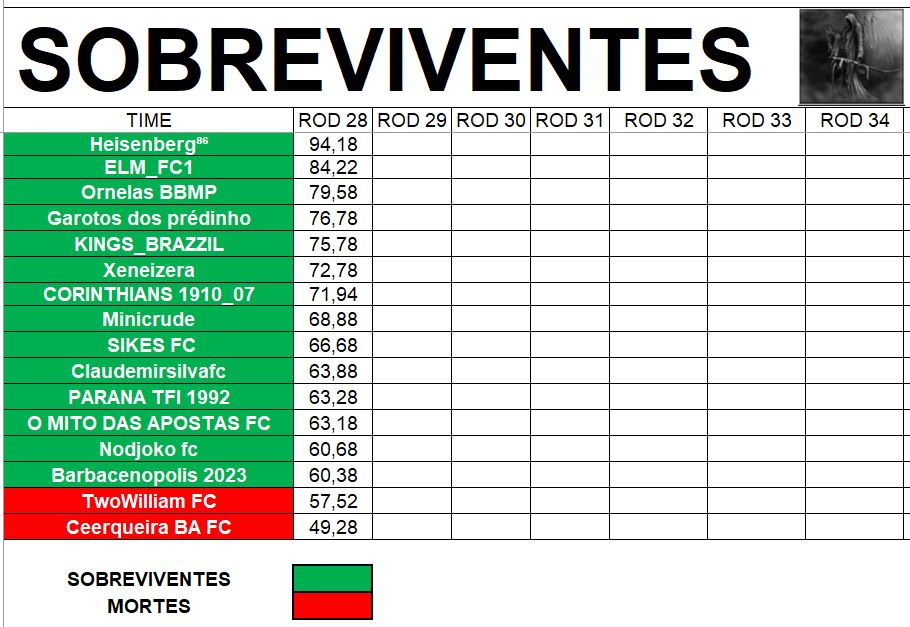 SOBREVIVENTES – RODADA 28