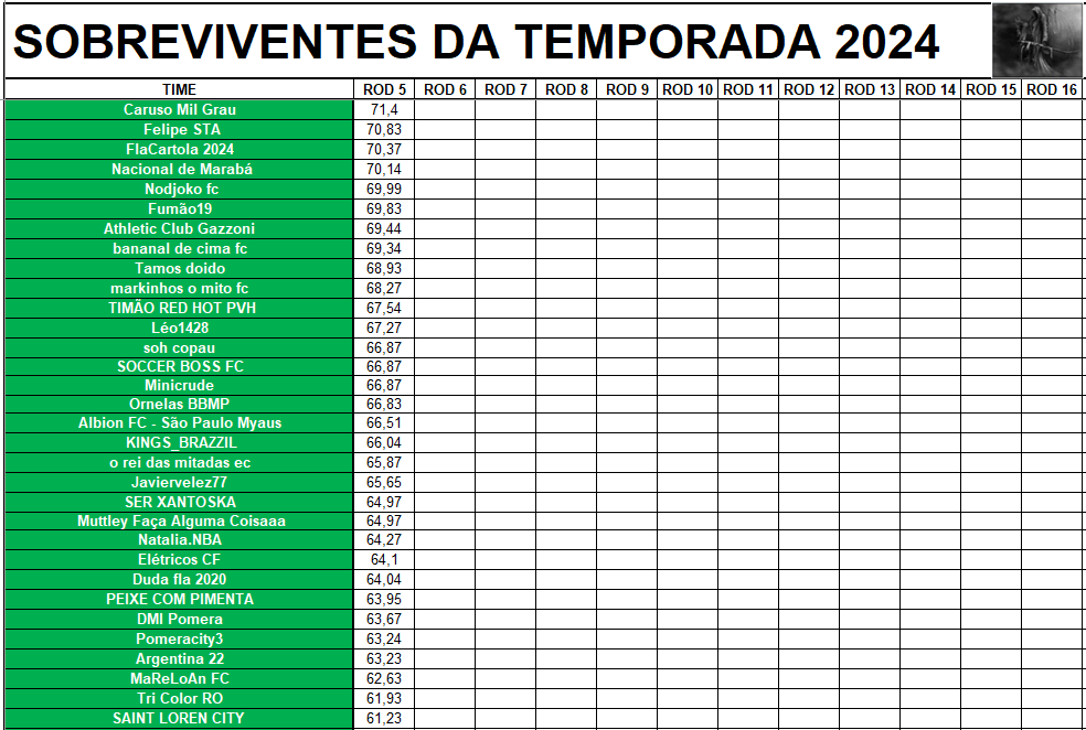SOBREVIVENTES DA TEMPORADA – RODADA 5