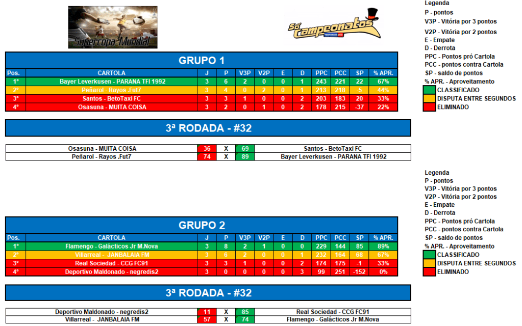 • CLASSIFICAÇÃO COPA DO URUGUAI